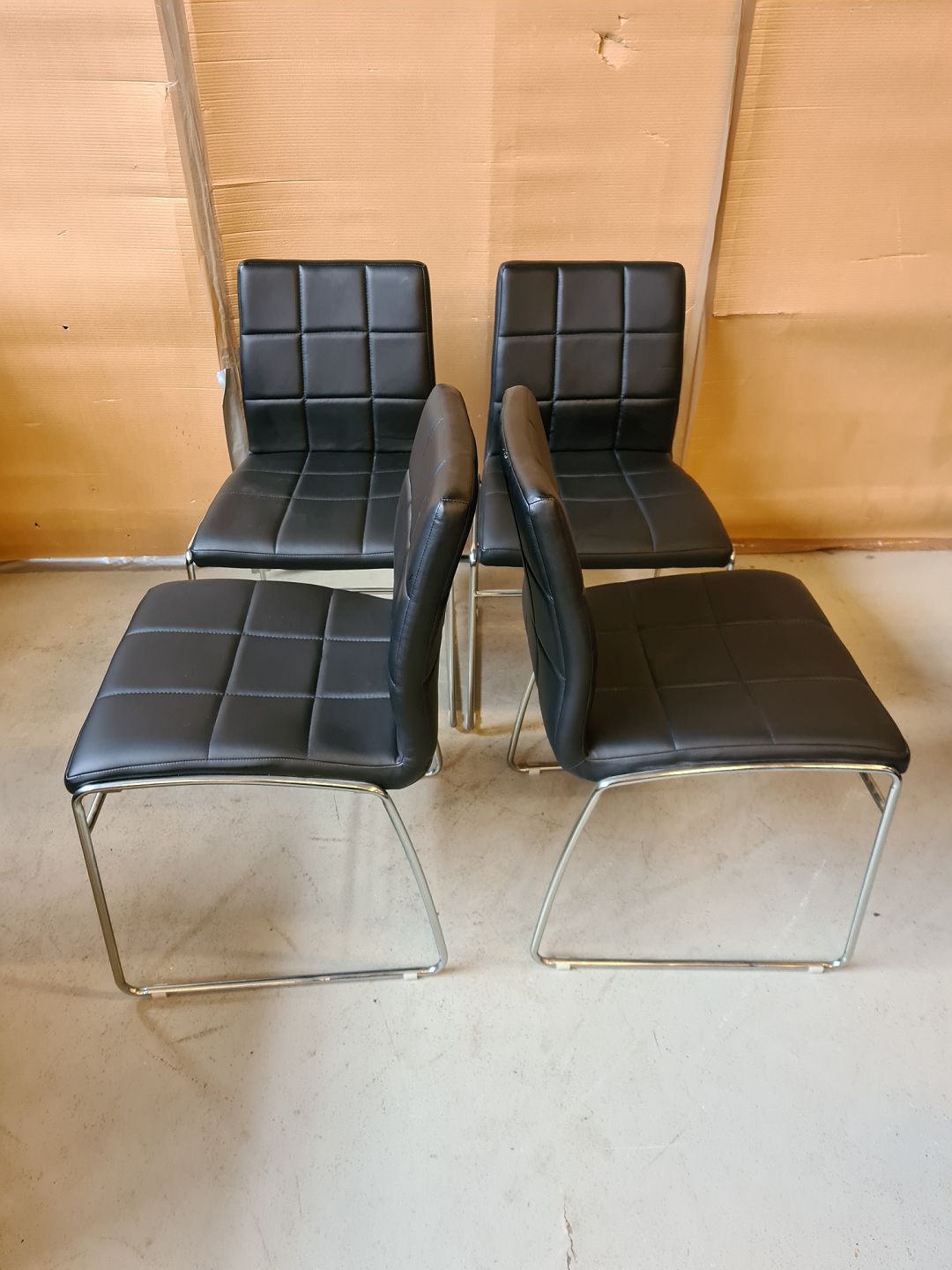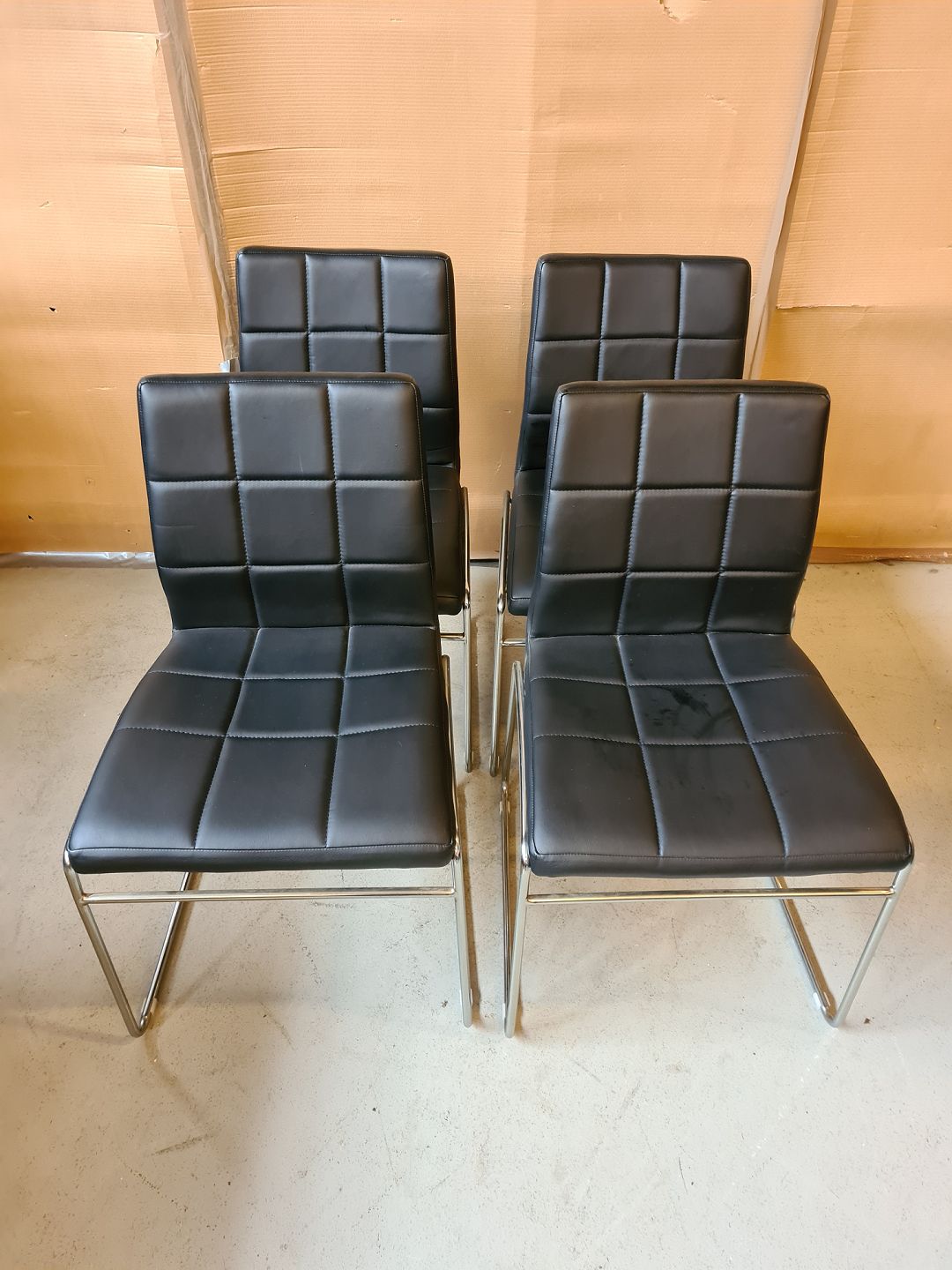 4 Stole i metal med kunstlæder, af nyere dato.
