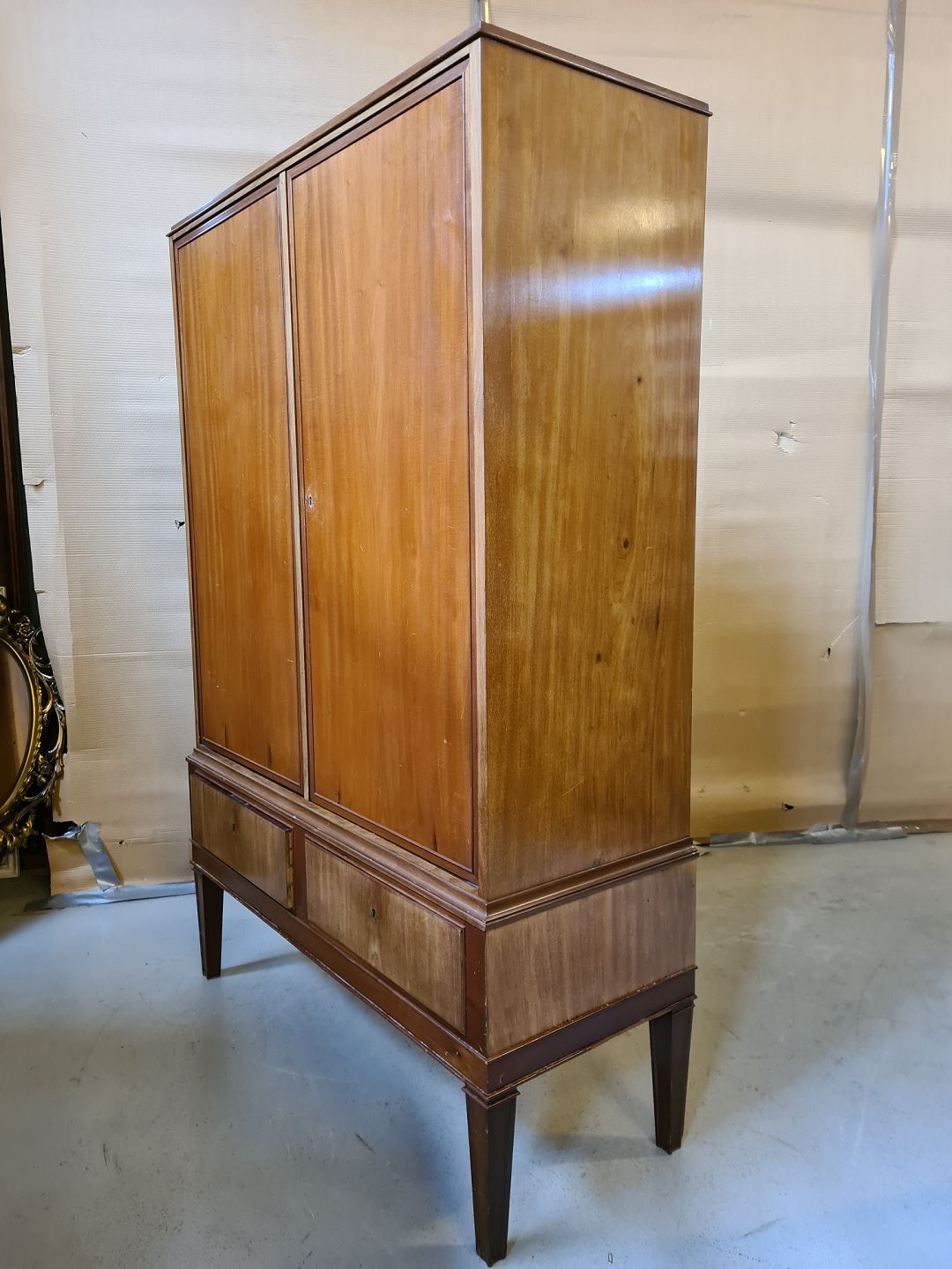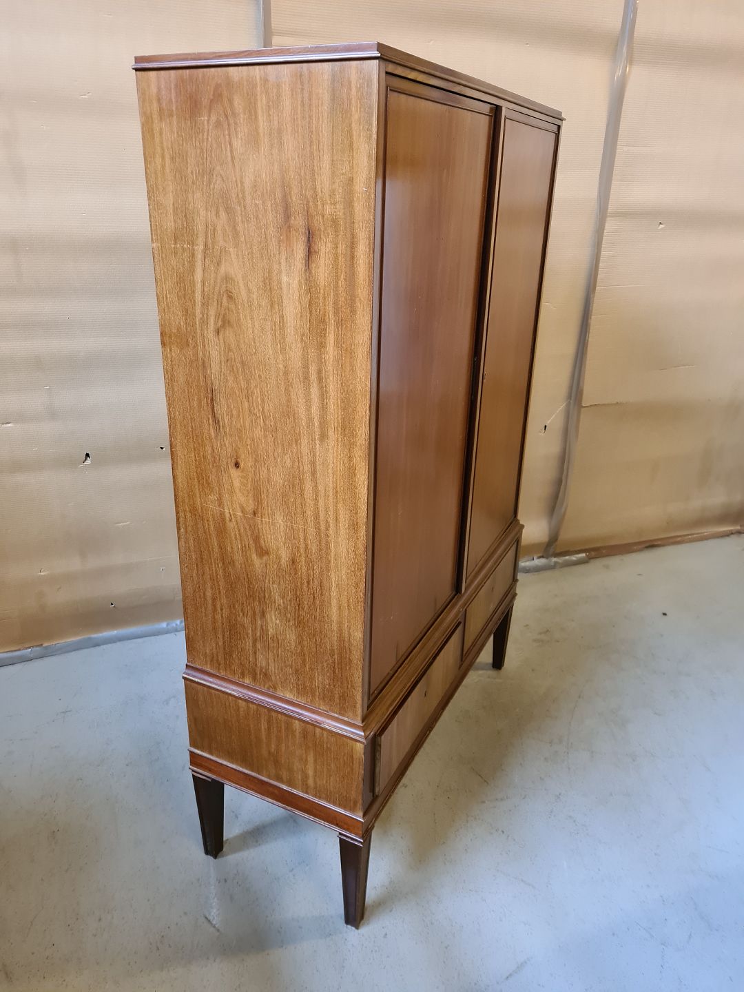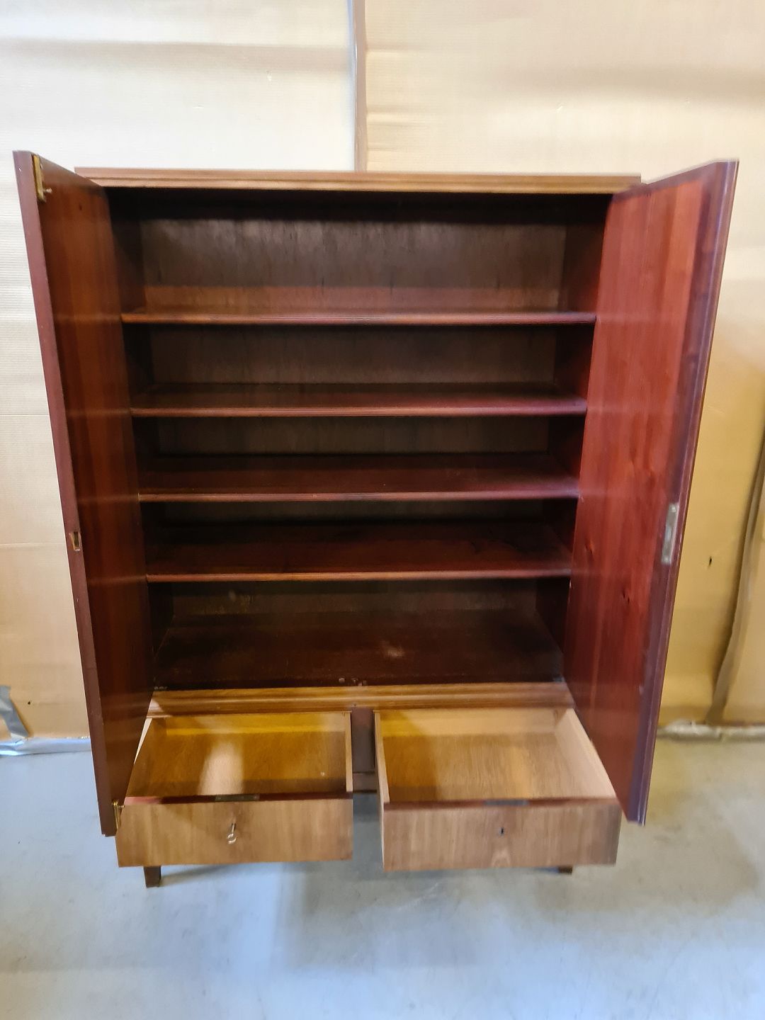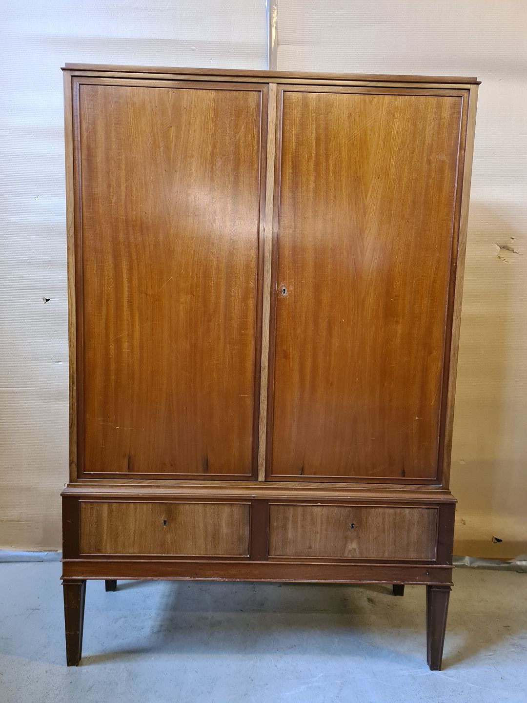 Lysberg Hansen og Terp dækketøjsskab i fineret mahogni, fra 1950erne.