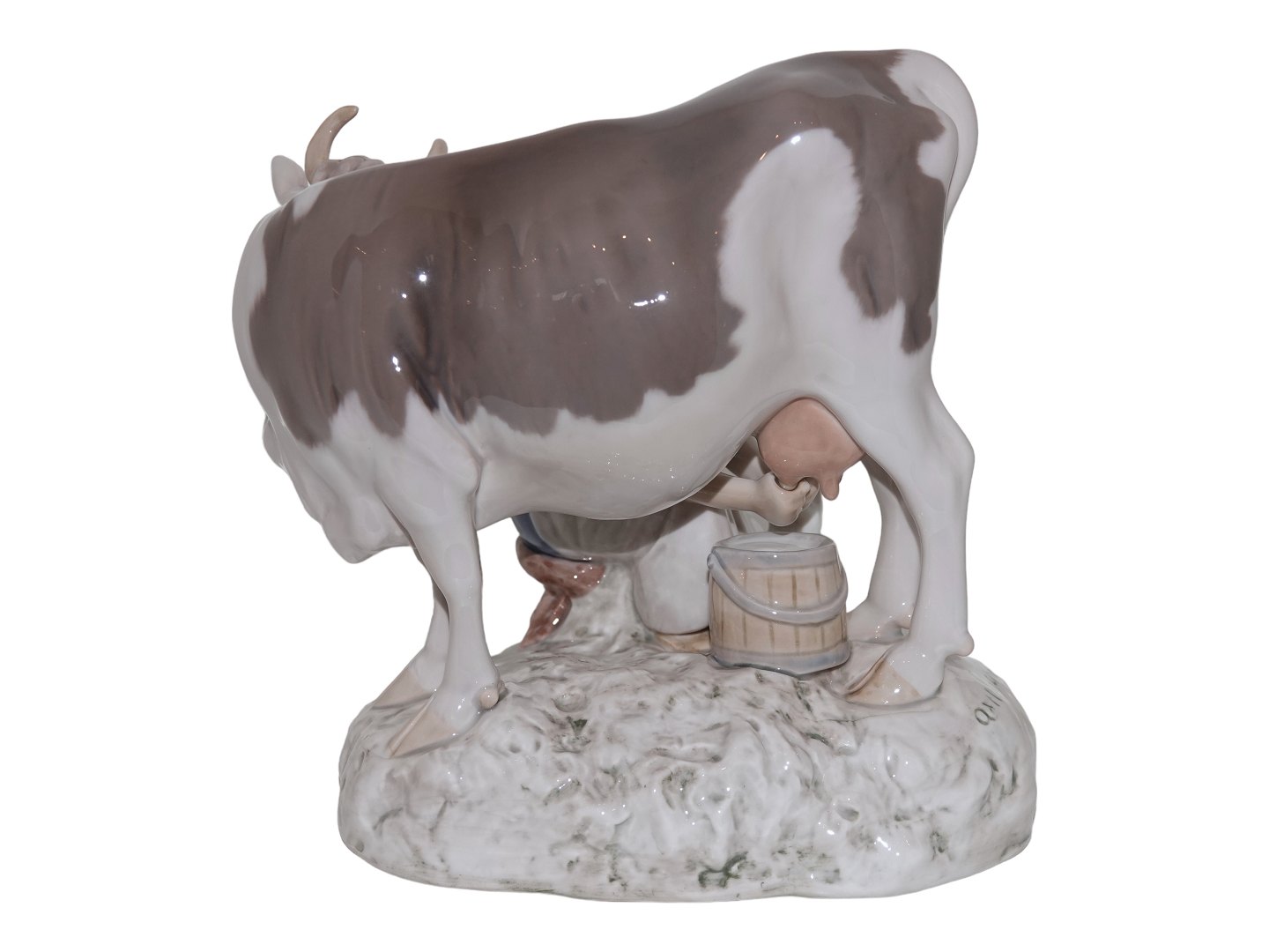 Stor Bing & Grøndahl figur, bondepige med kalv og hvid kat.