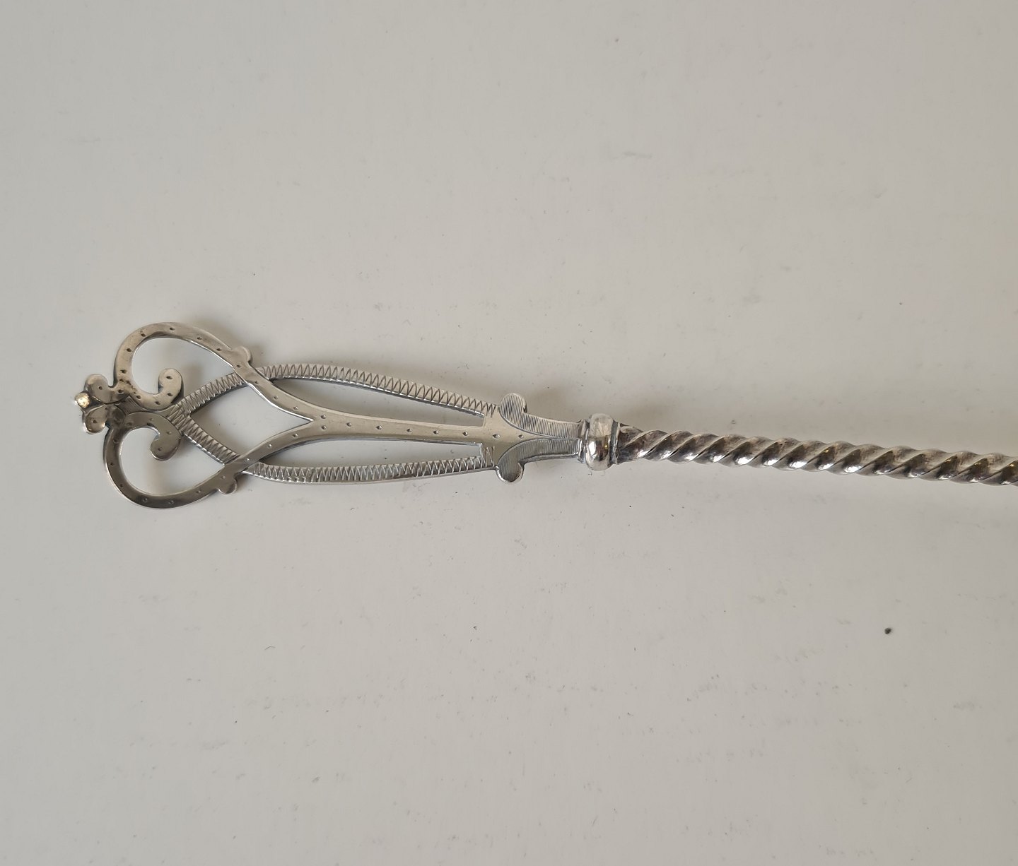 Large silver serving spoon made in New Gothic style from 1883 by J. Grønlund