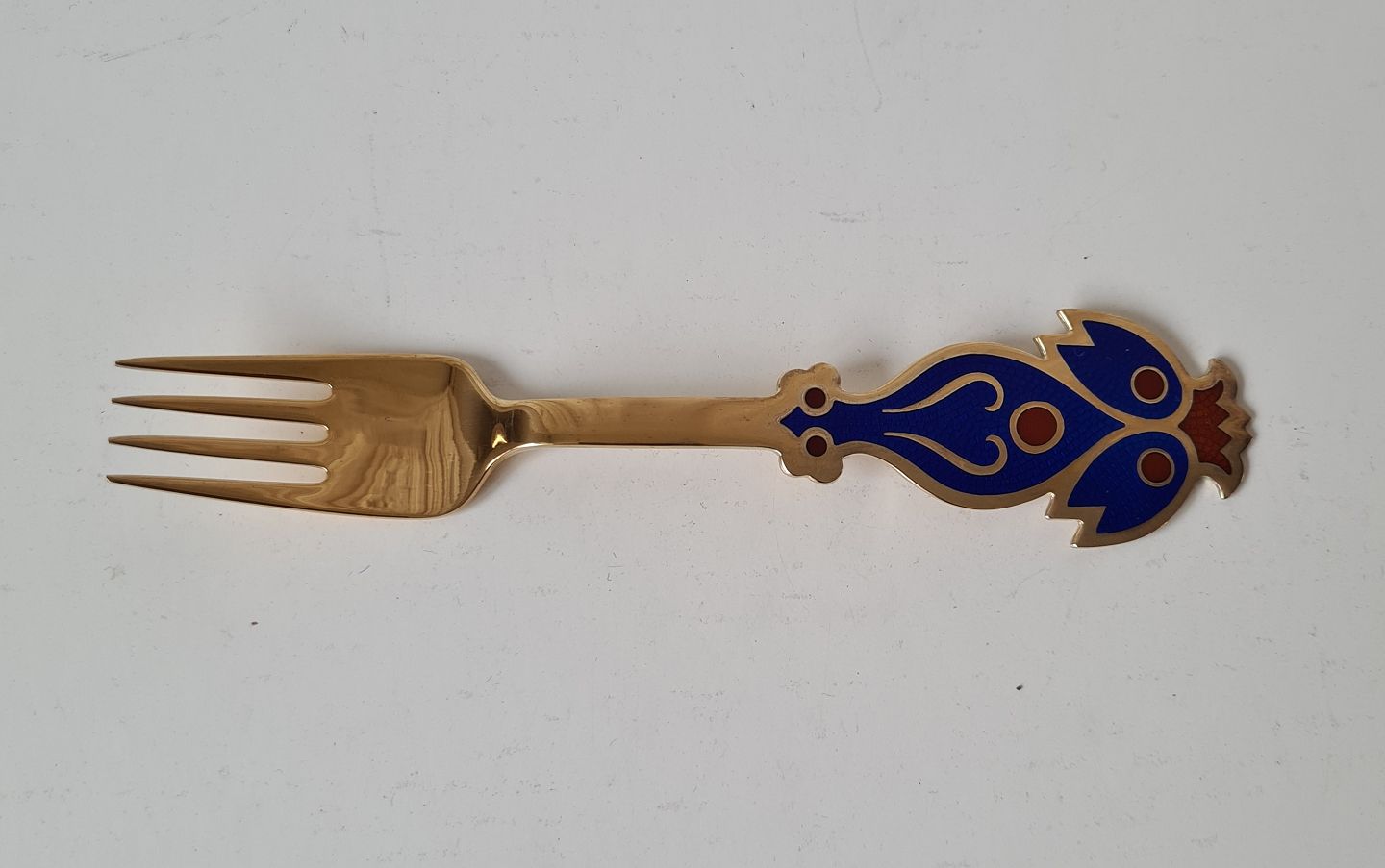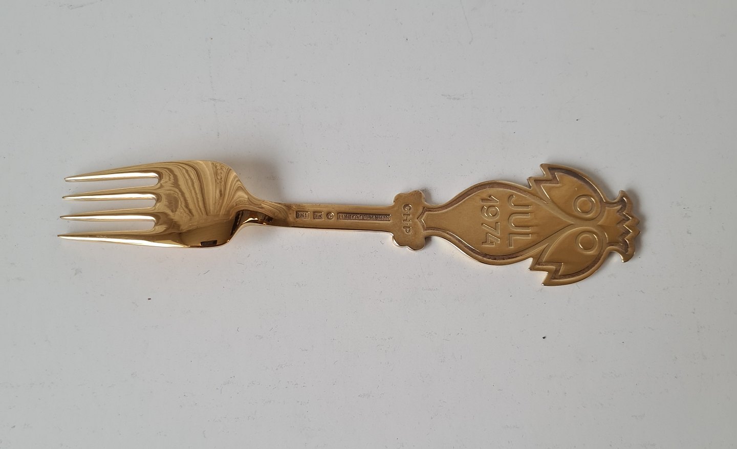 A.Michelsen julegaffel i forgyldt sterlingsølv med emalje 1974