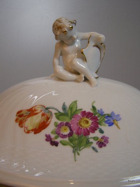 R.C. 493/1669 og 493/1672 Let Saksisk Blomst Terrin med Underfad Fra før 1890 meget fin stand