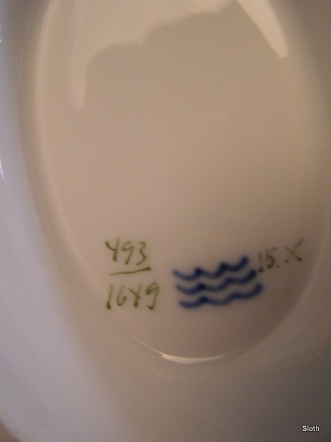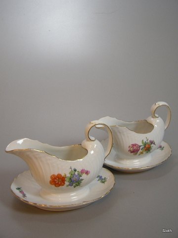 R.C. 493/1649 Let saksisk Blomst Sauceskåle 2. Sort. guld let slidt L:26 cm. H: 9 cm.