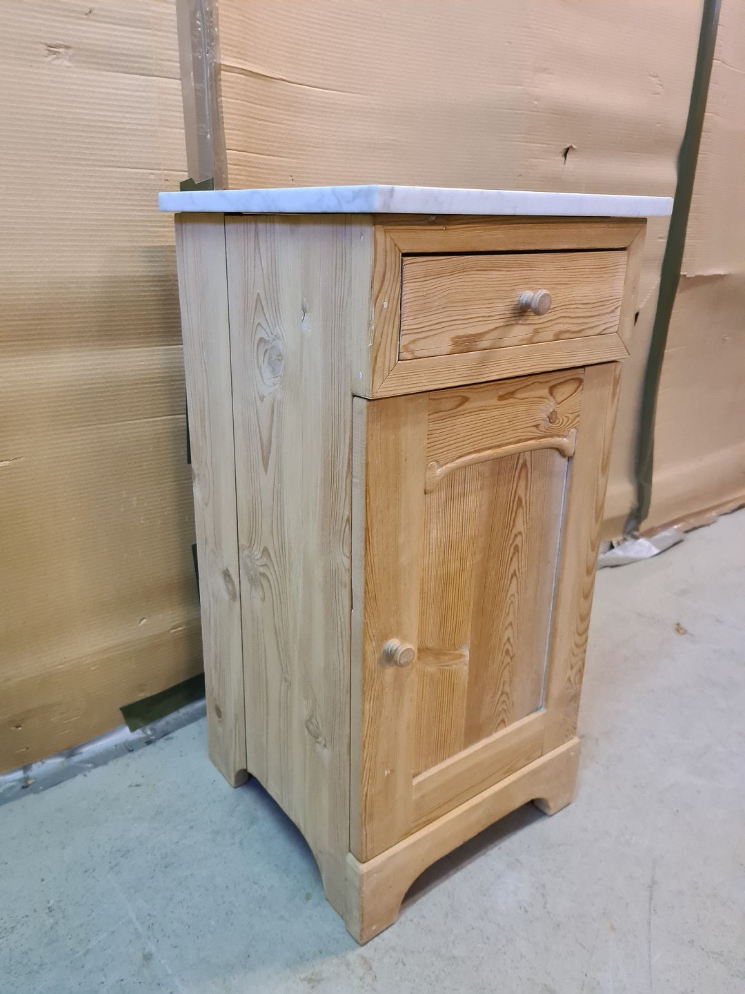 Natskab i massivt fyrretræ med marmorplade, fra 1920erne.