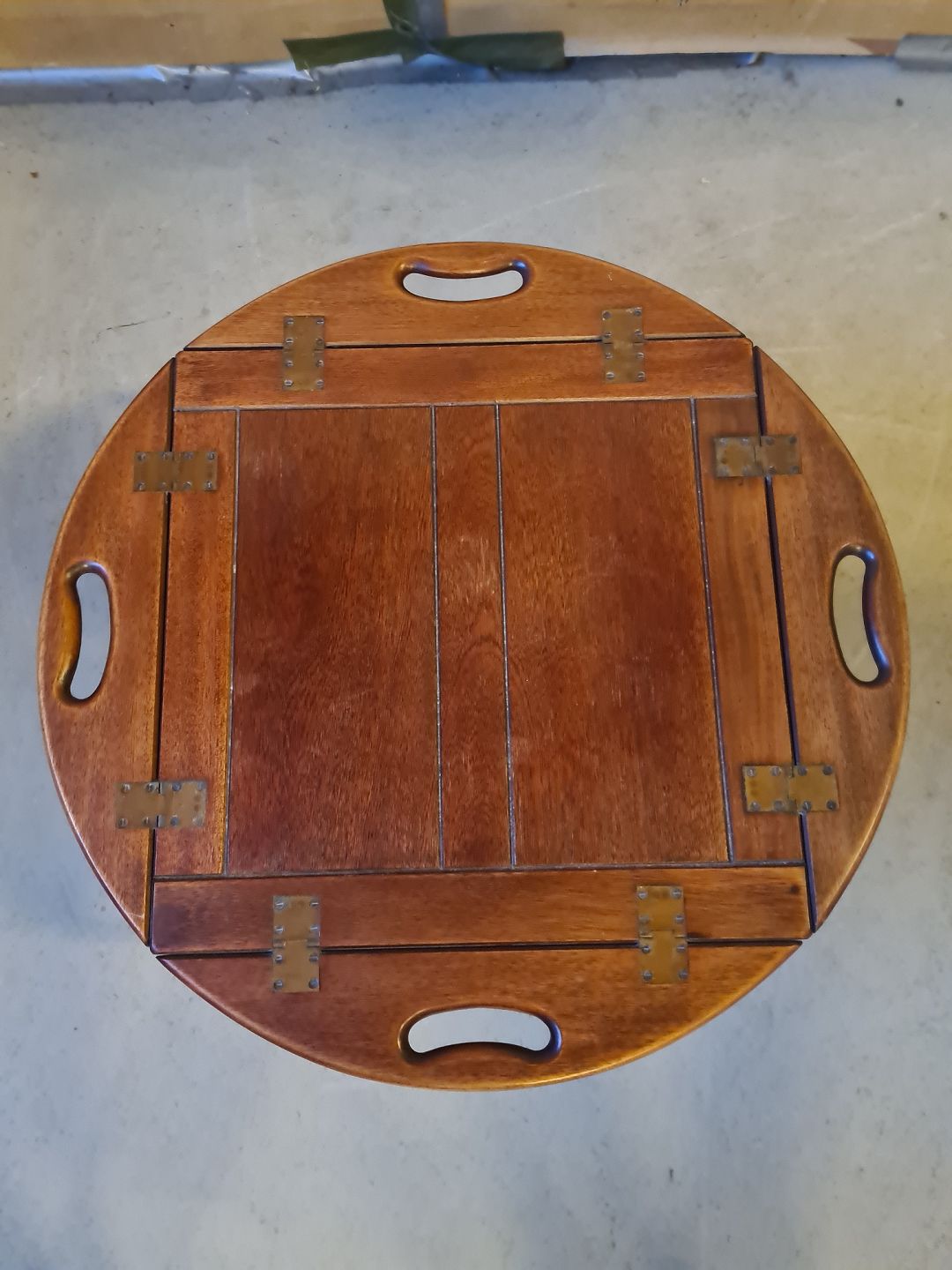 Butlers tray i mahogni og bøgetræ, fra 1980erne.