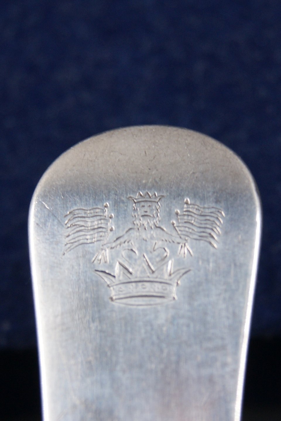 Stempel: RH (guardein Peter R. Hinnerup 1840-63) - F.Dahl (sølvsmed Emil Ferdinand Dahl f.1814 - d.1879) - 3 tårne over 57.