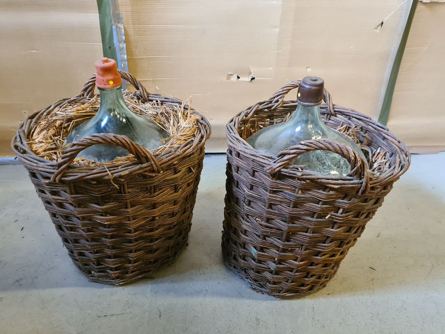 2 Vinballoner i kurv, fra 1970erne.