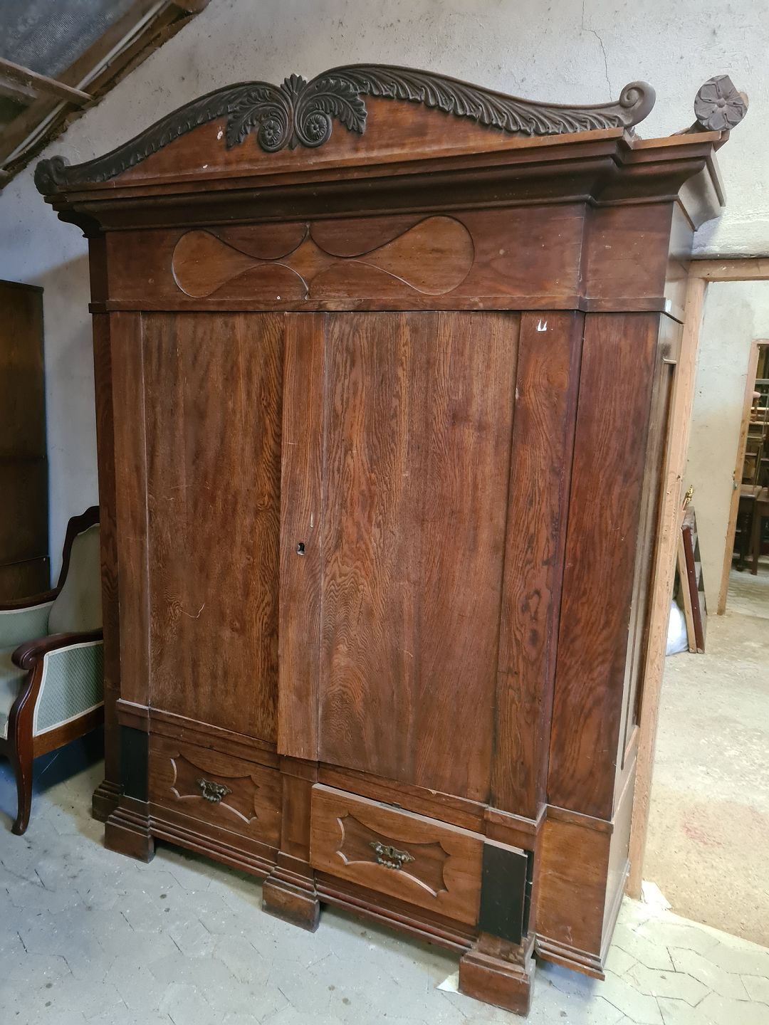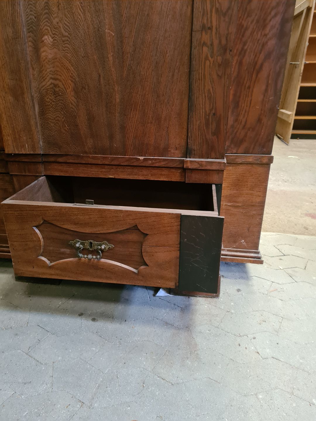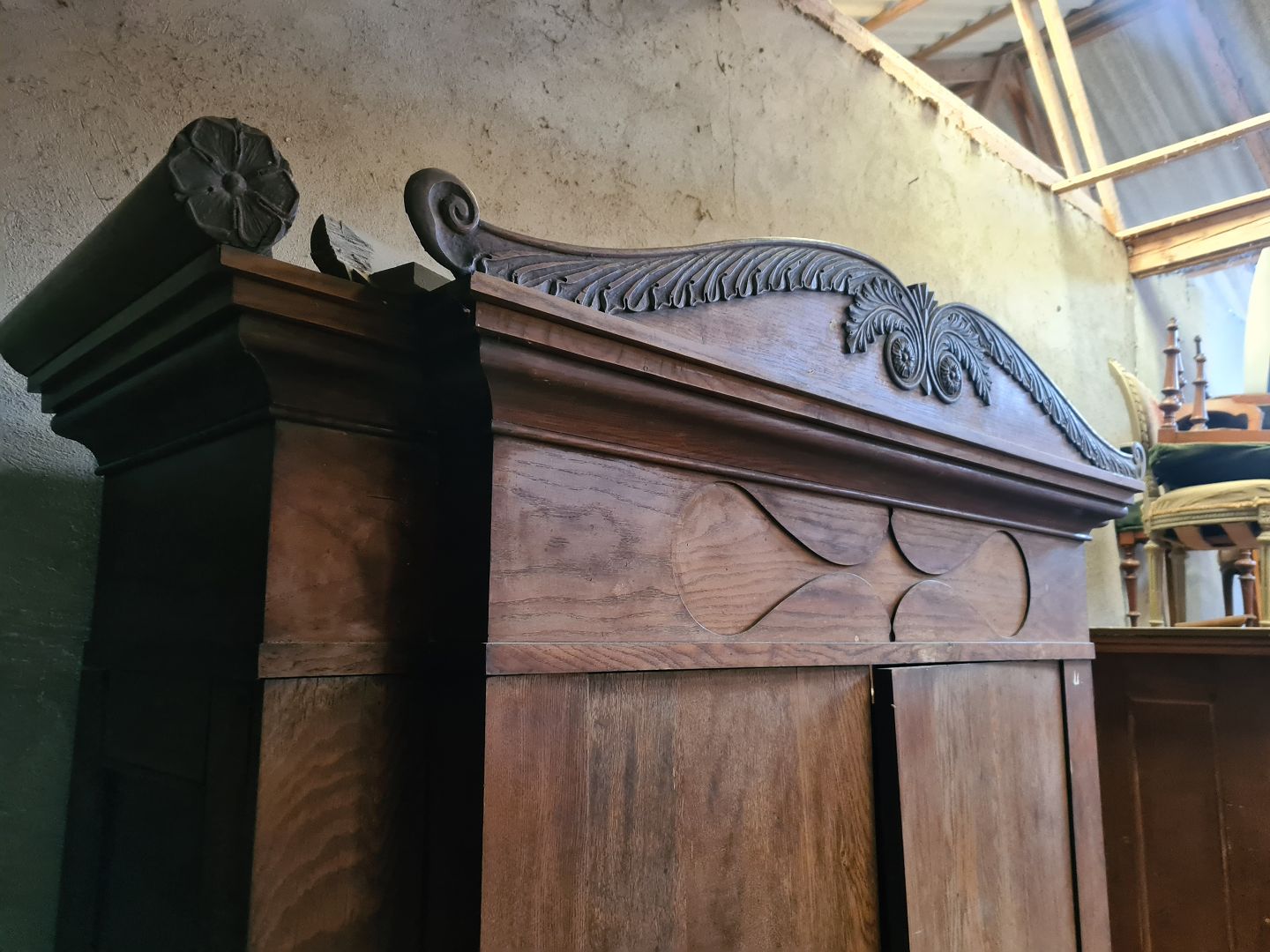 Stort skab i fineret mahogni og egetræ, fra 1890erne.