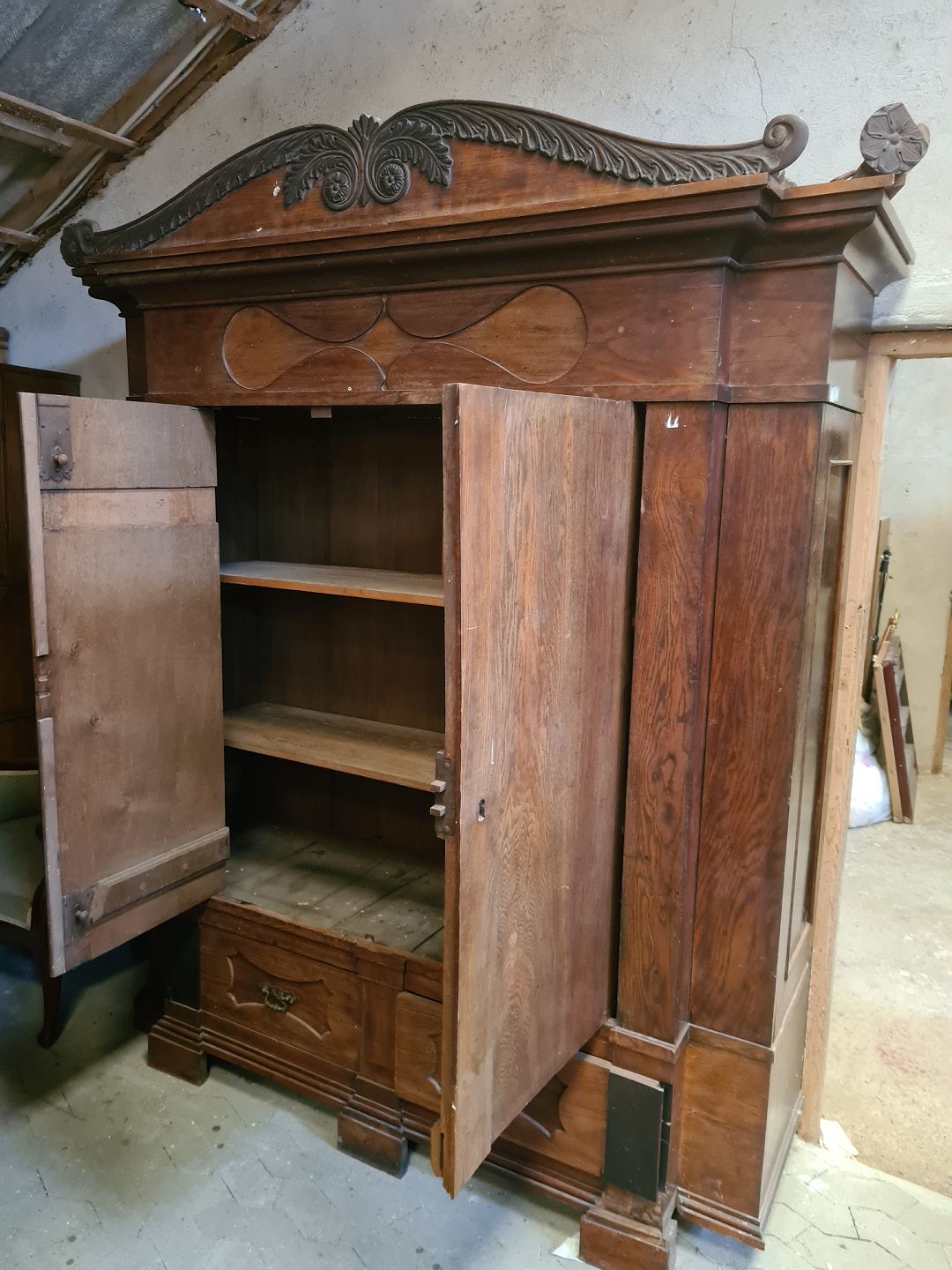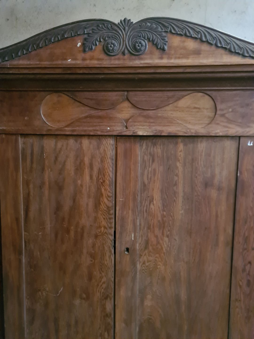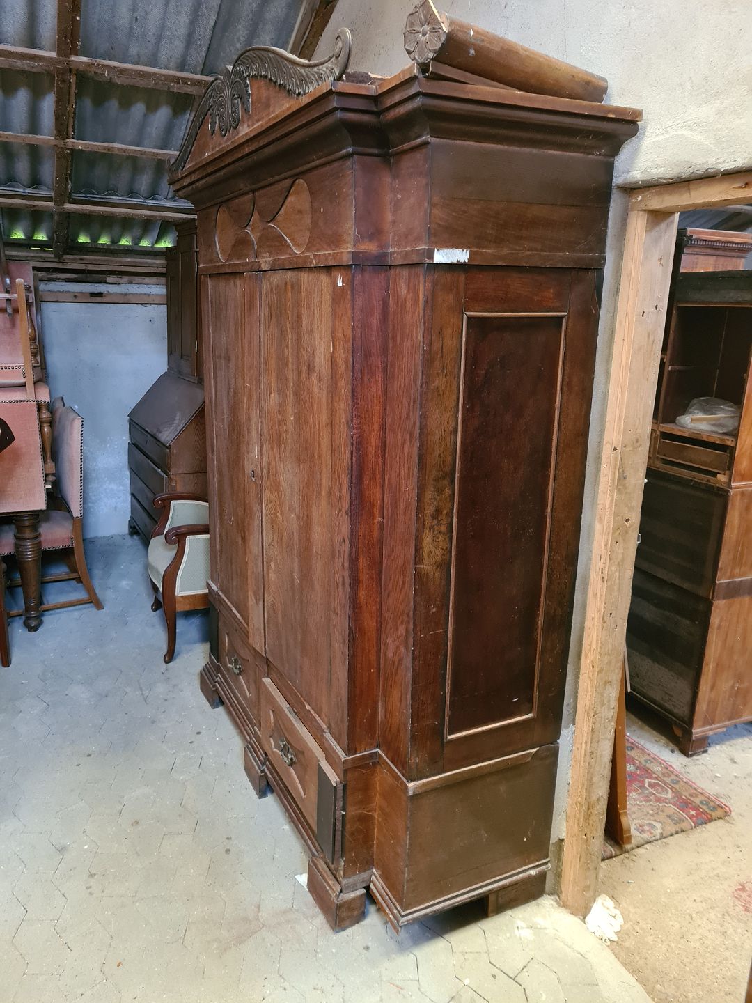 Stort skab i fineret mahogni og egetræ, fra 1890erne.