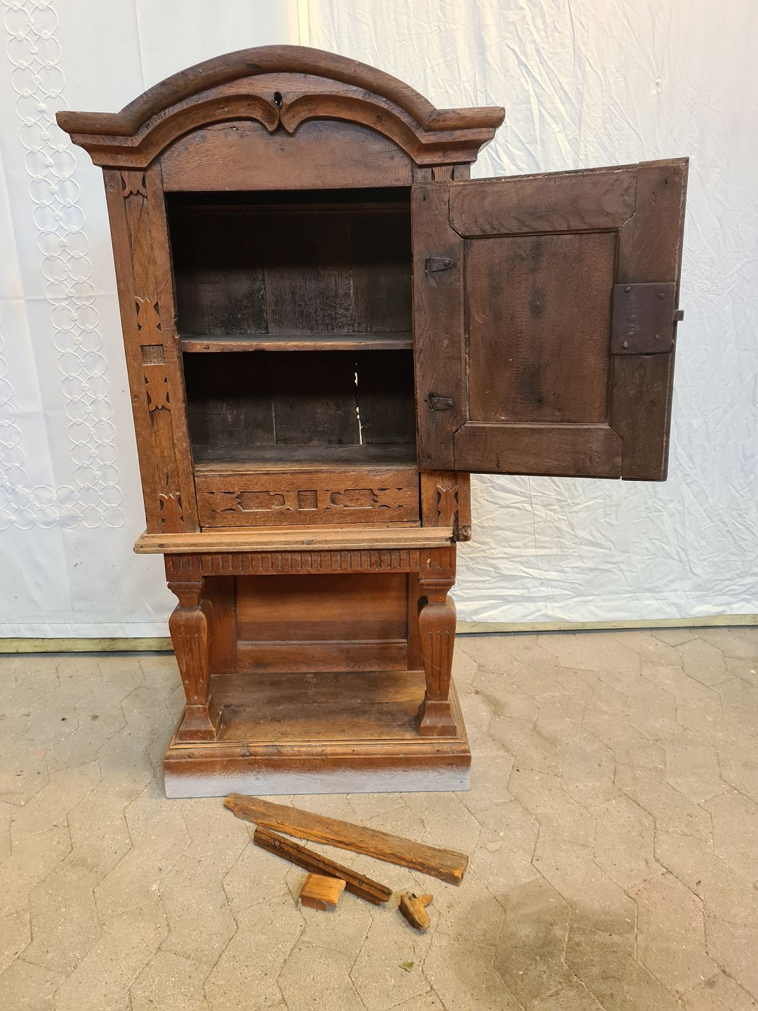 Gammelt skab i massivt egetræ, fra 1870erne.
