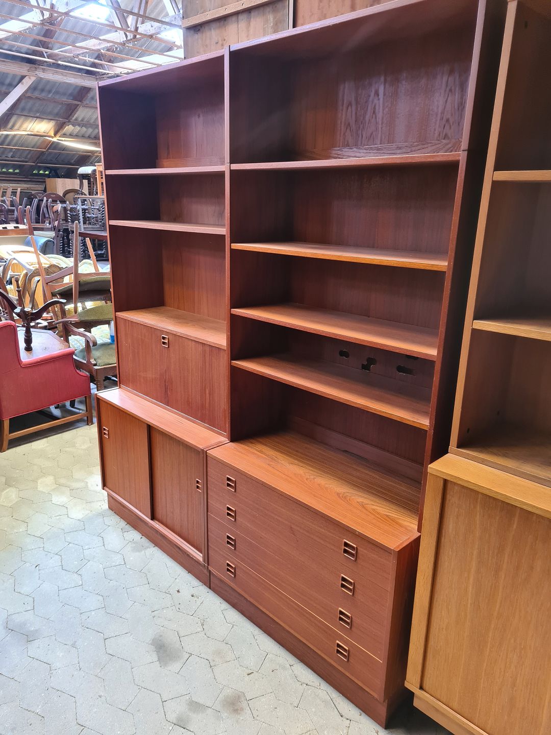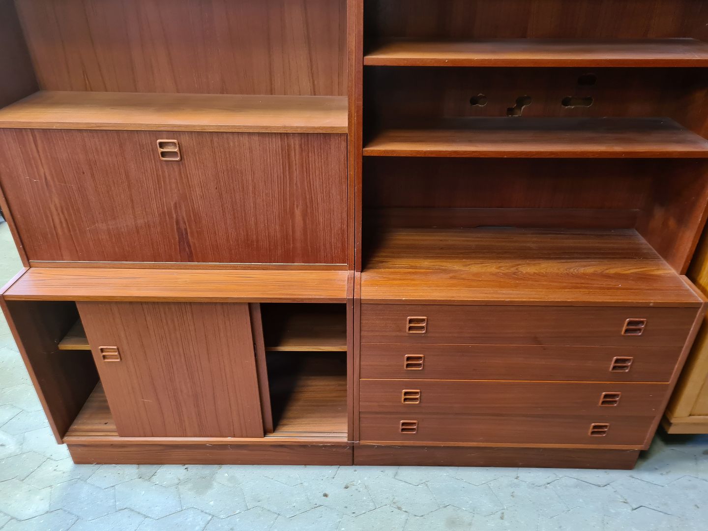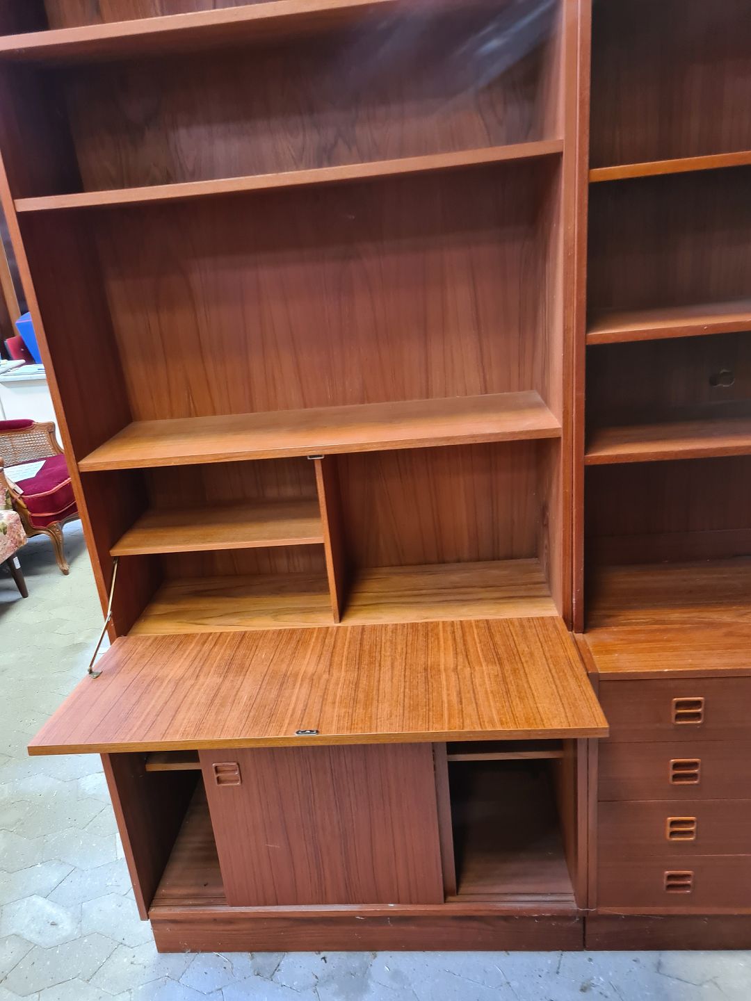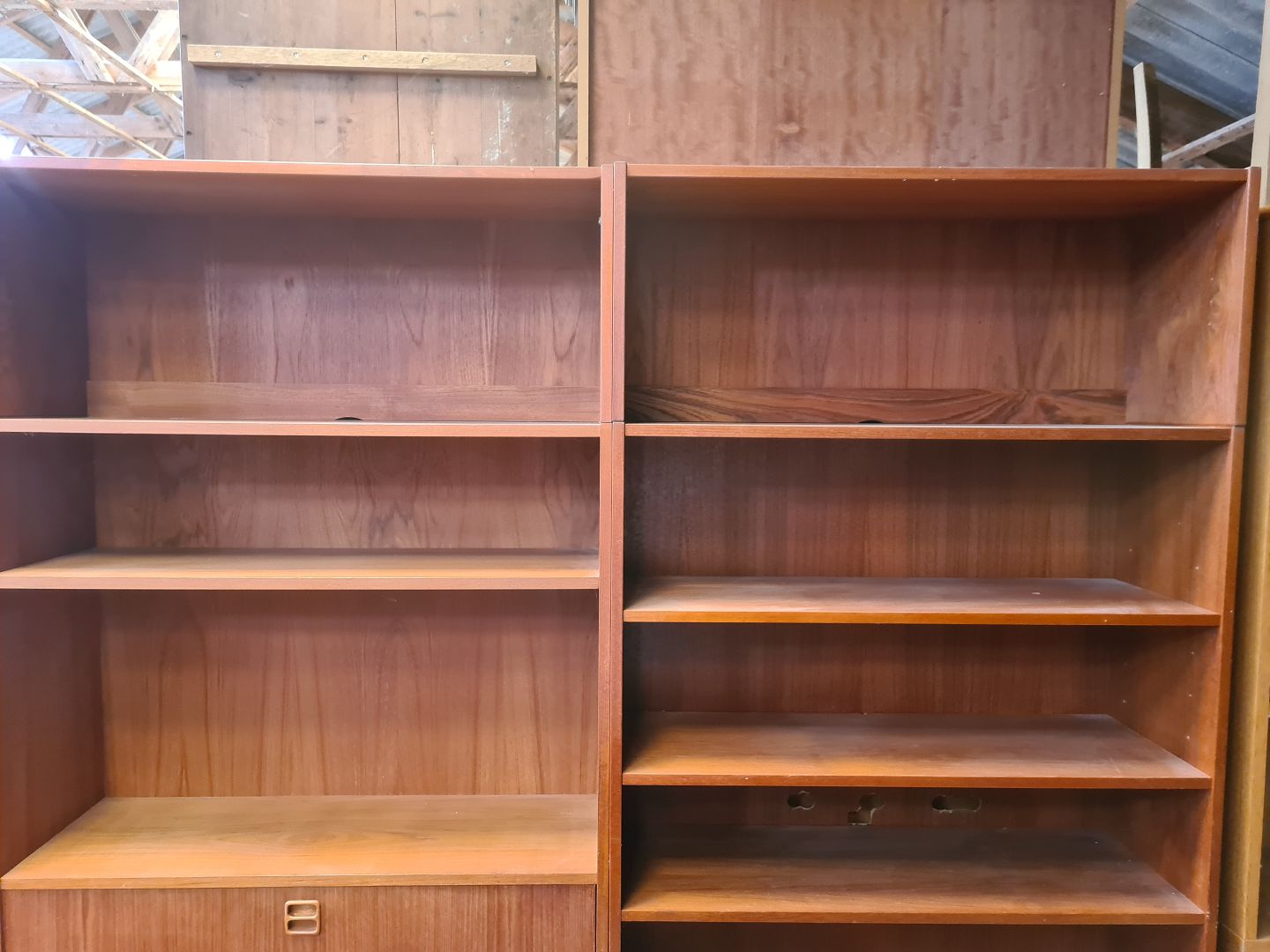 2 Reolsektioner i fineret teaktræ, fra 1960erne.