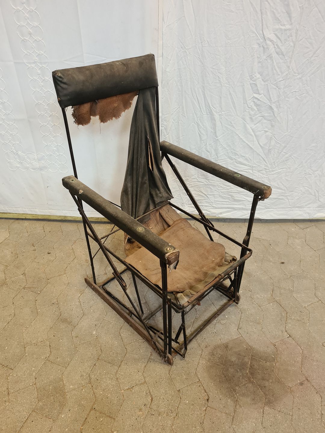 Resten af gammel stol i metal, fra 1900erne.