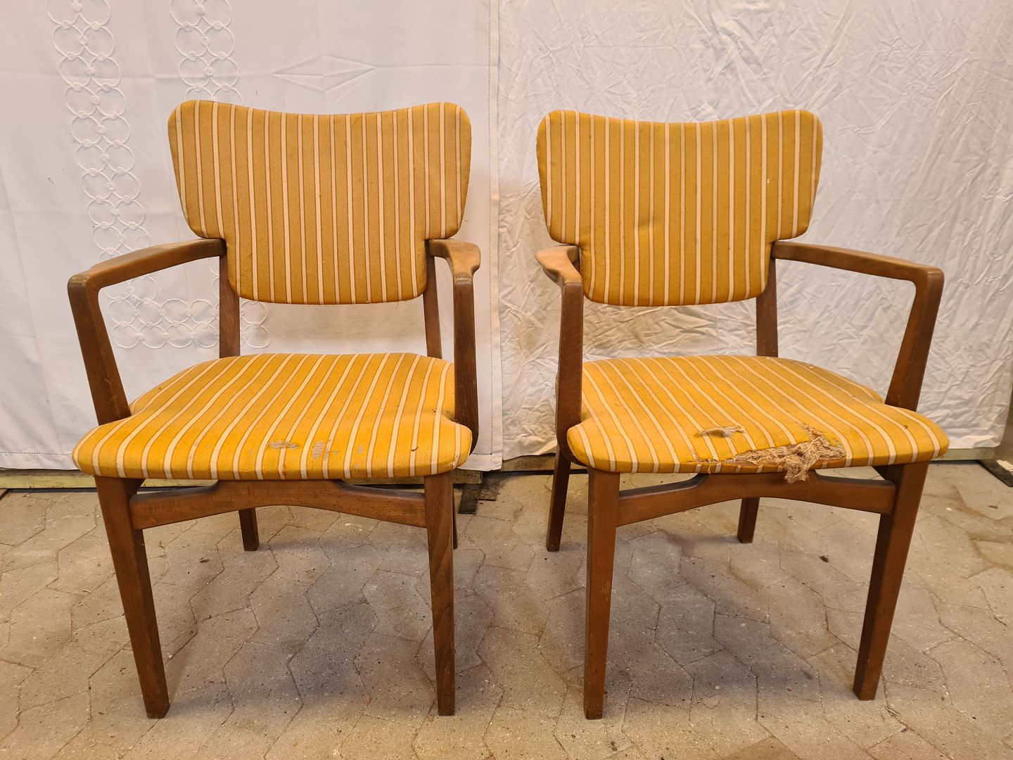 2 Armstole i massivt nødetræ, fra 1950erne.