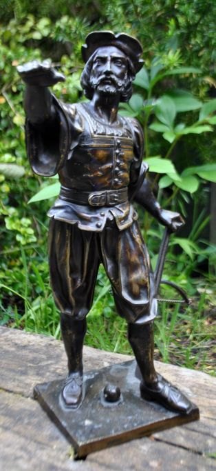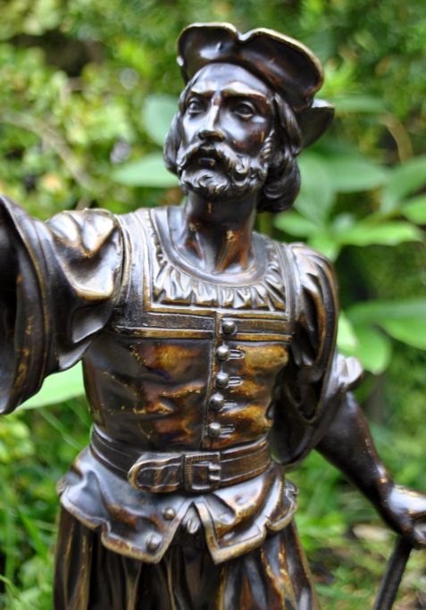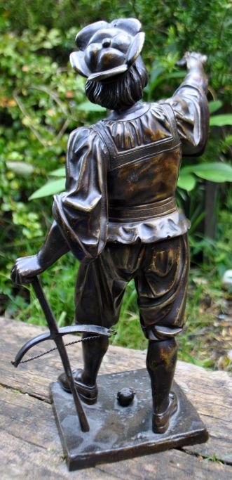 Ubekendt kunstner (19. årh.), Jæger med armbrøst. Renaisancefigur. Skulptur i patineret bronze. H: 33 cm. B: 25 cm.  Perfekt stand!