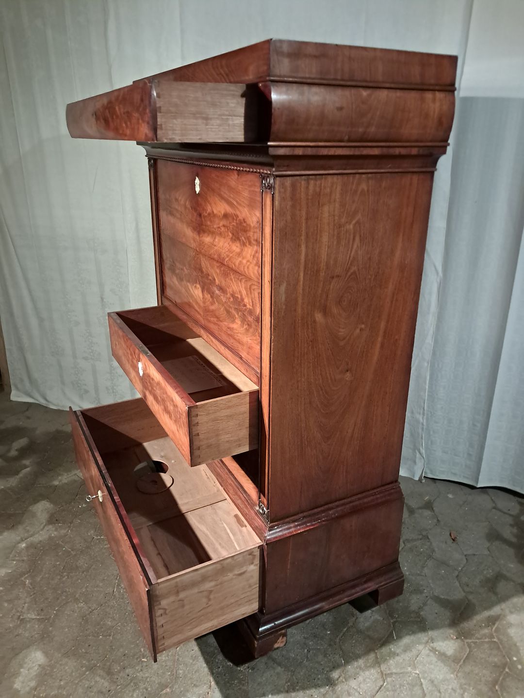 Sekretær i fineret mahogni, fra 1890erne.