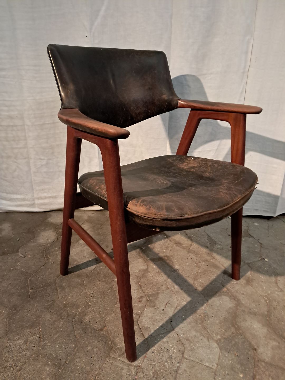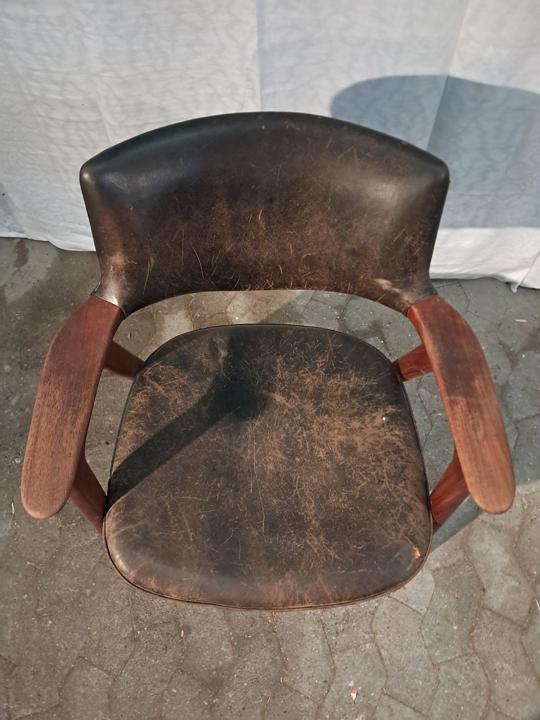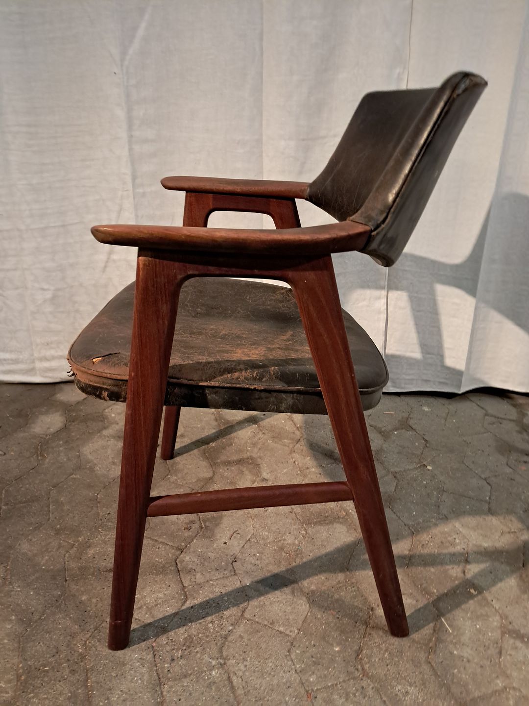 Armstol i massivt teaktræ og læder, fra 1960erne.
