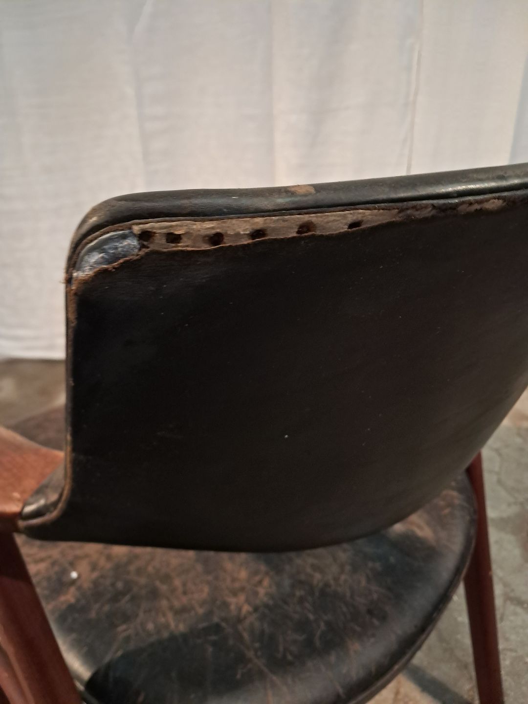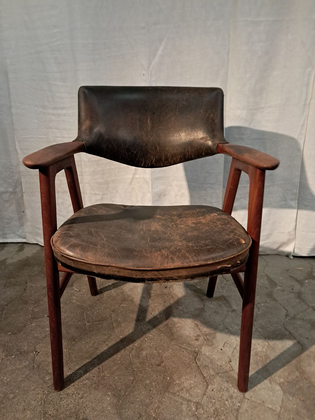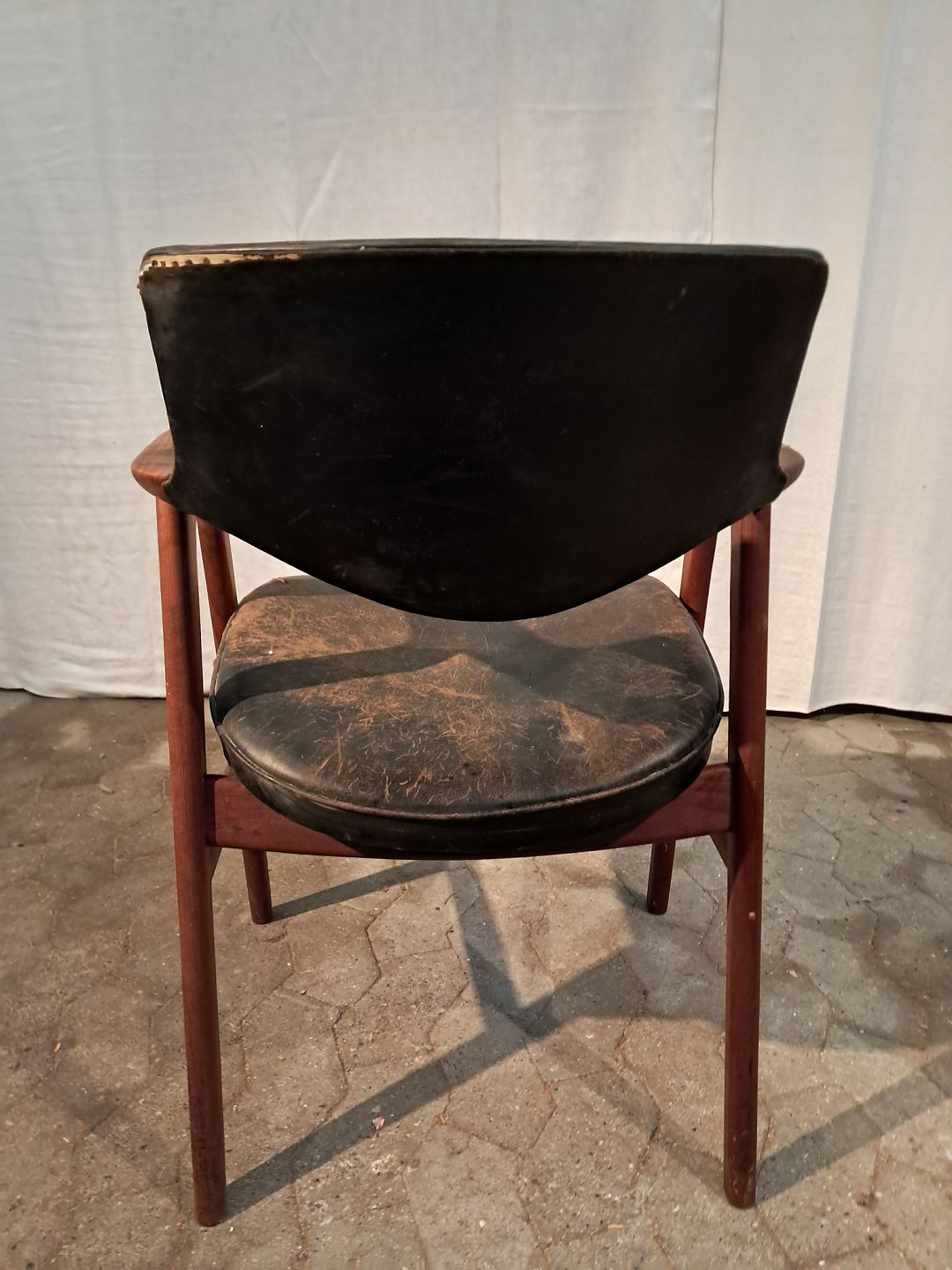 Armstol i massivt teaktræ og læder, fra 1960erne.