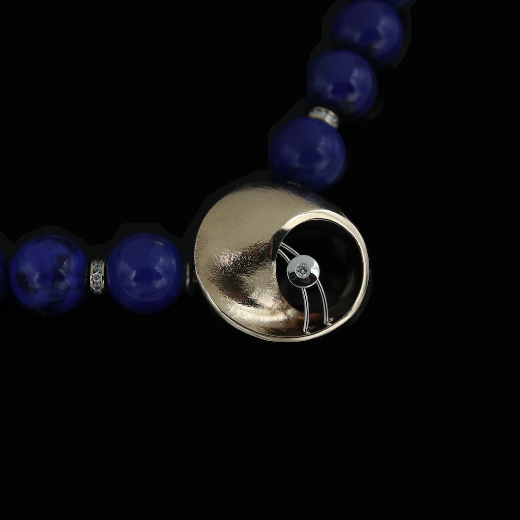 Lapis Lazuli perlekæde med diamantlås i 14k guld og sterlingsølv.