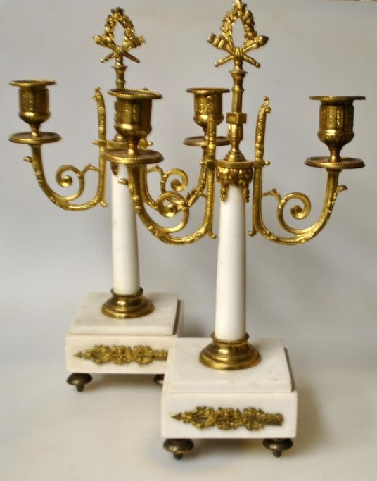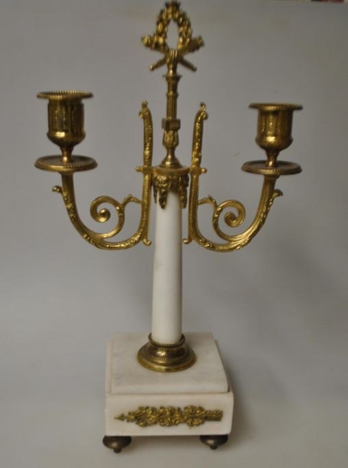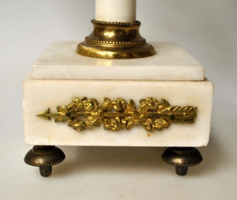 Et par franske hvide marmorstager med lueforgyldt bronze, 19. årh.