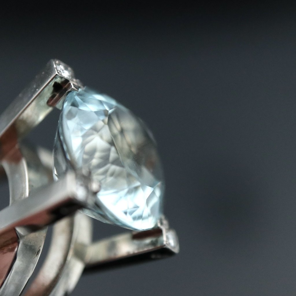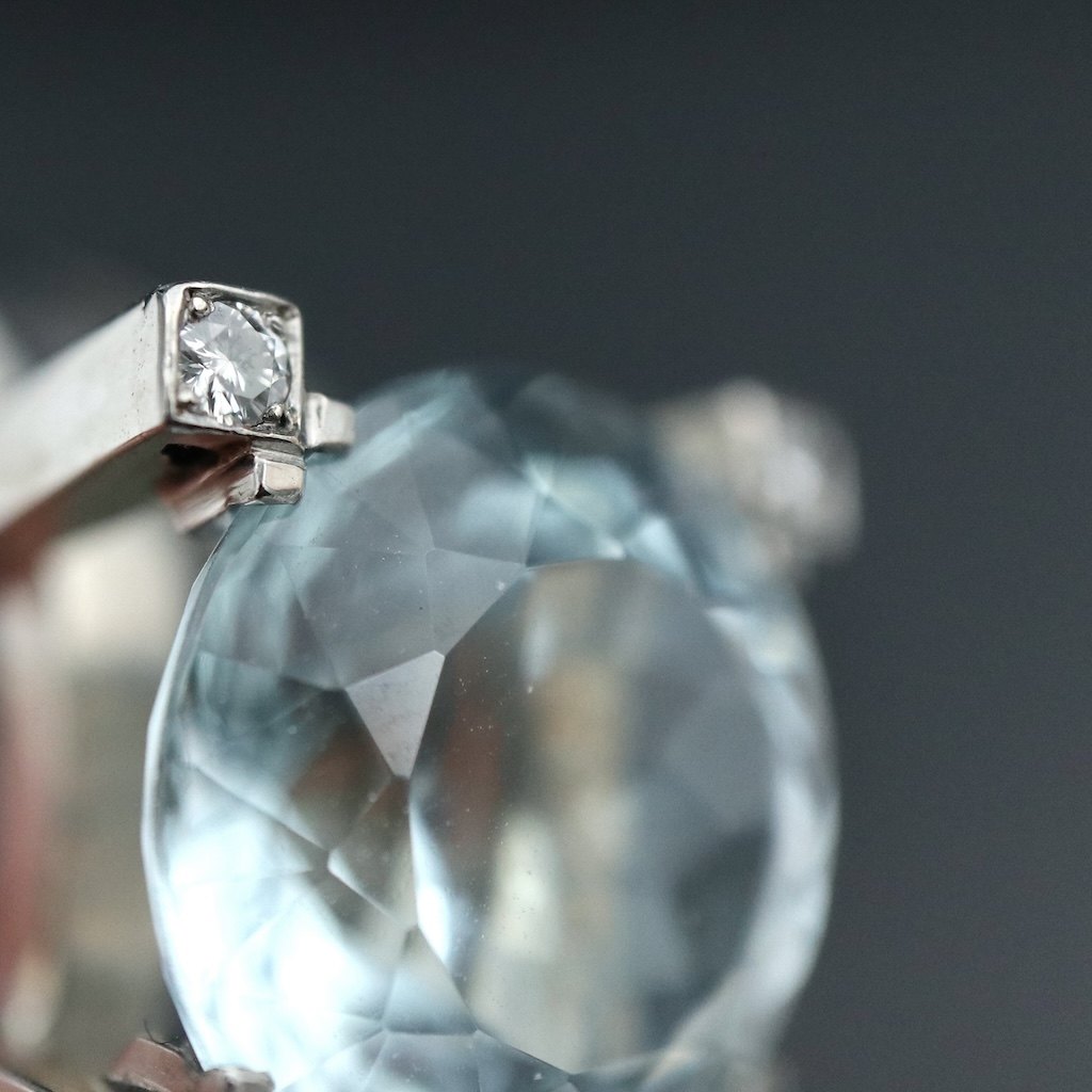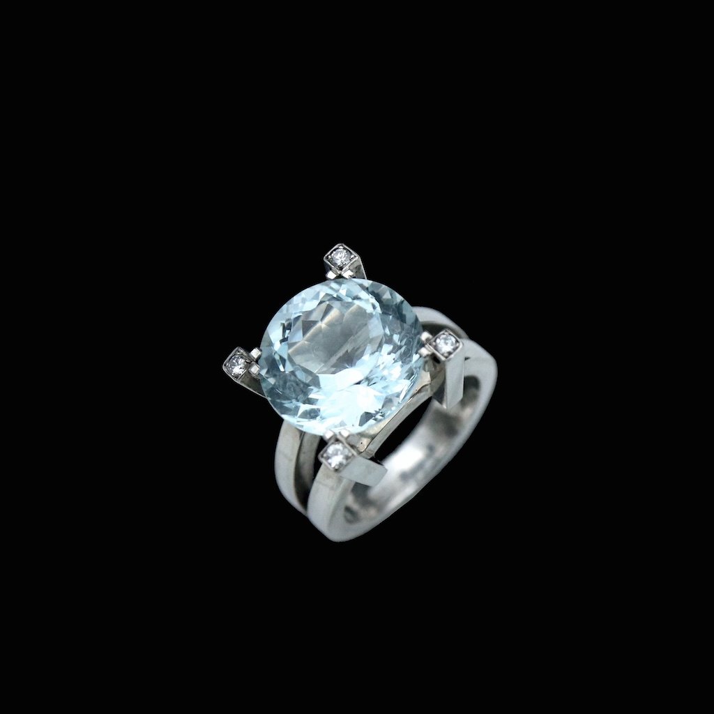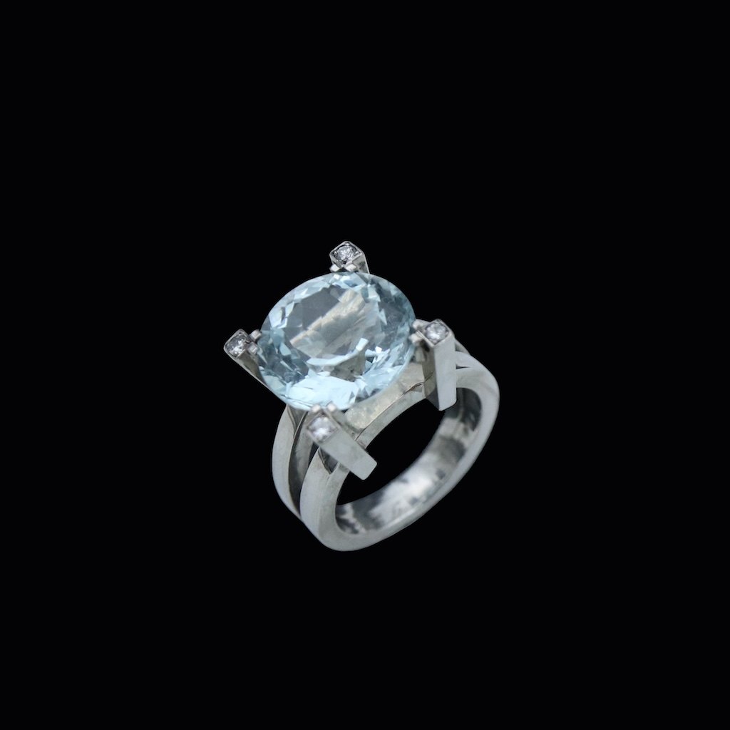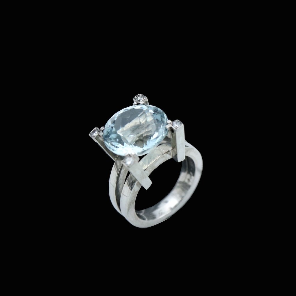 Vilhelm Holmstrup. Ring i 14k hvidguld med aquamarine og diamanter.