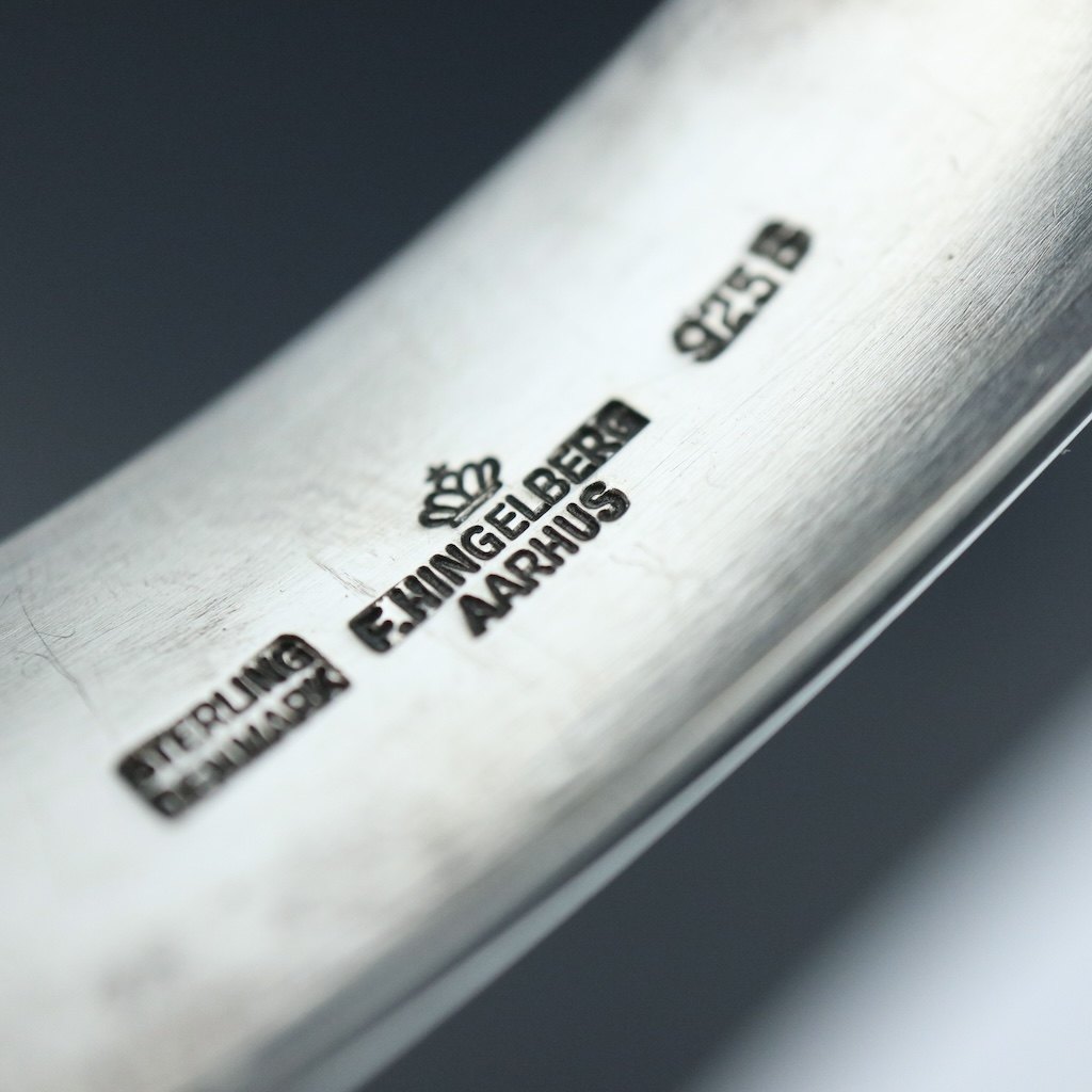 Stemplet med F. Hingelberg stempler, 925S, Sterling, Denmark.