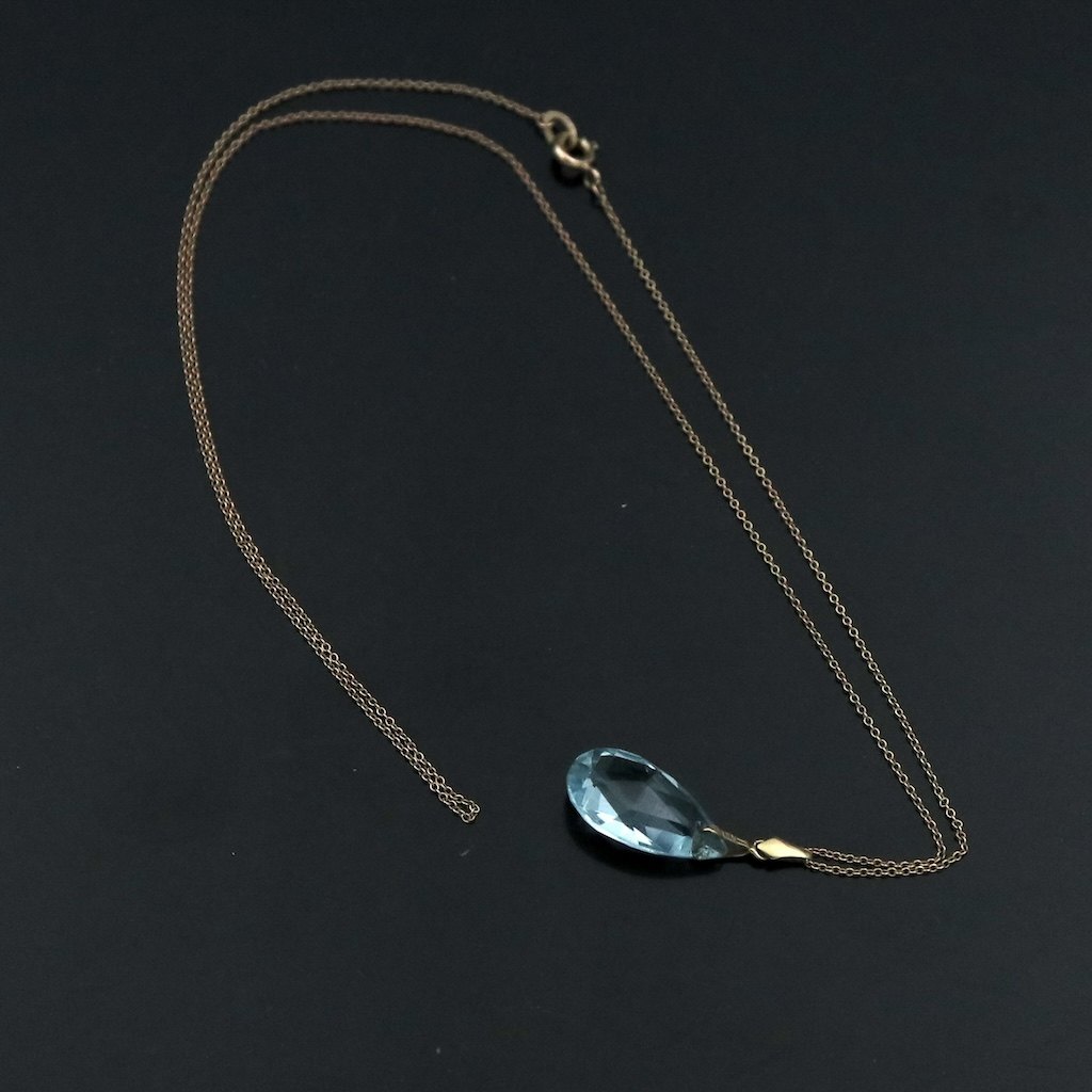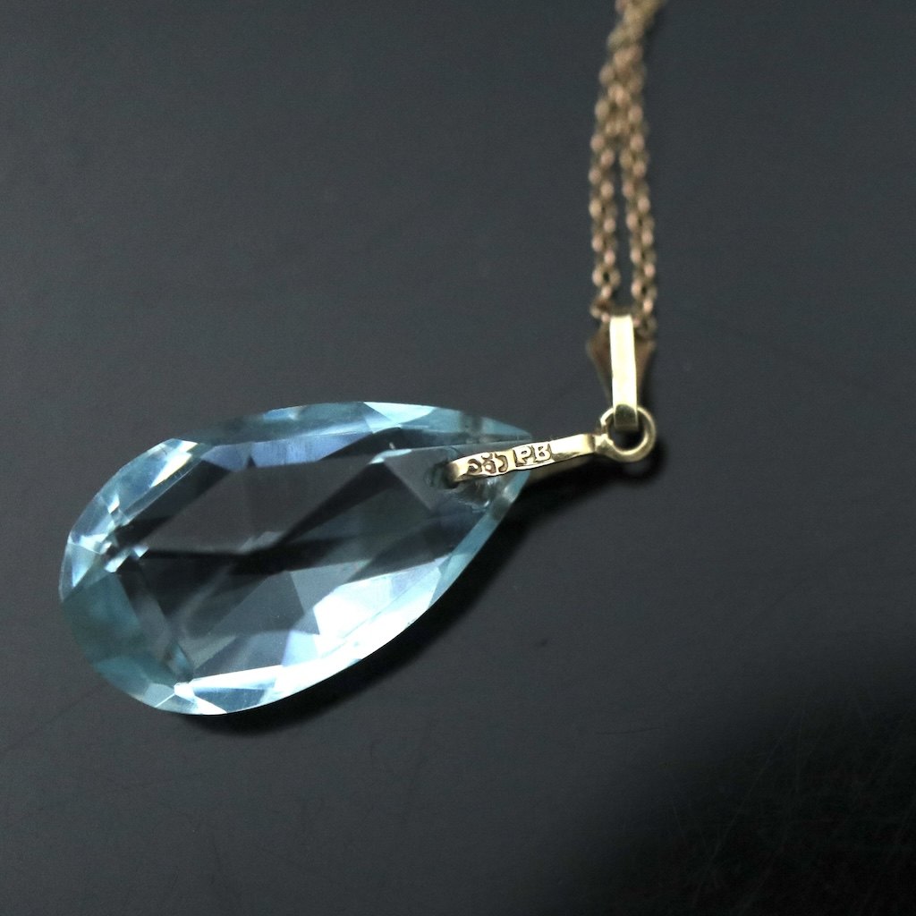 Vedhæng i 14k guld med dråbeformet aquamarin.