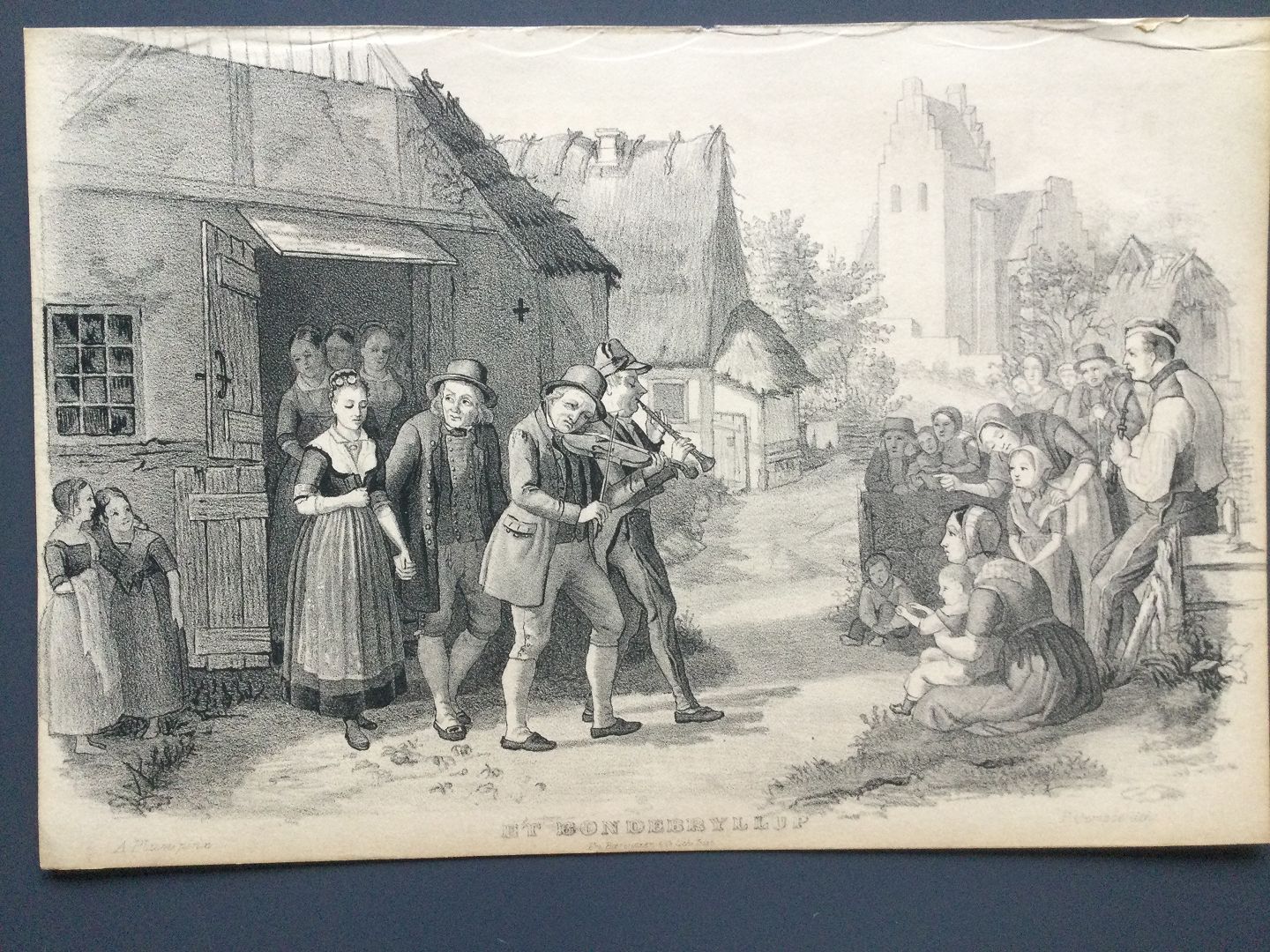 Litografi af Peter Gemzøe efter maleri af August Plum - Et Bondebryllup.