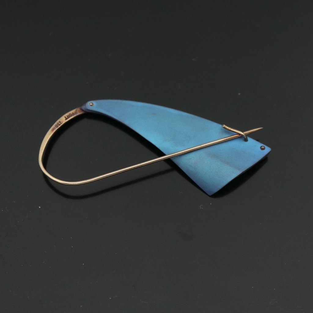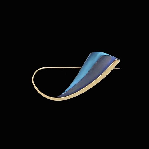 Kirsten Pontoppidan. Broche i18k guld med farveoxideret titanium.