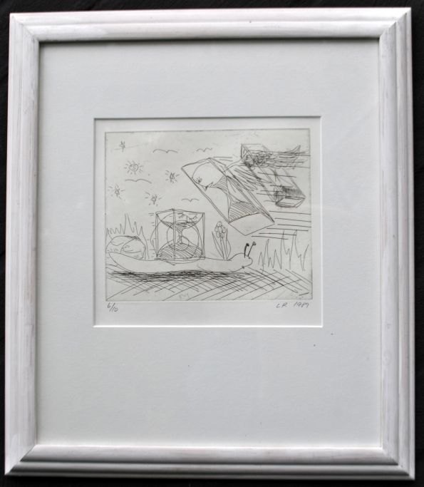 Ravn, Lars (1959 - ) Danmark: Komposition, 1989. Radering. Signeret: LR 1989. 6/10. H: 16,5 cm. B: 20 cm.