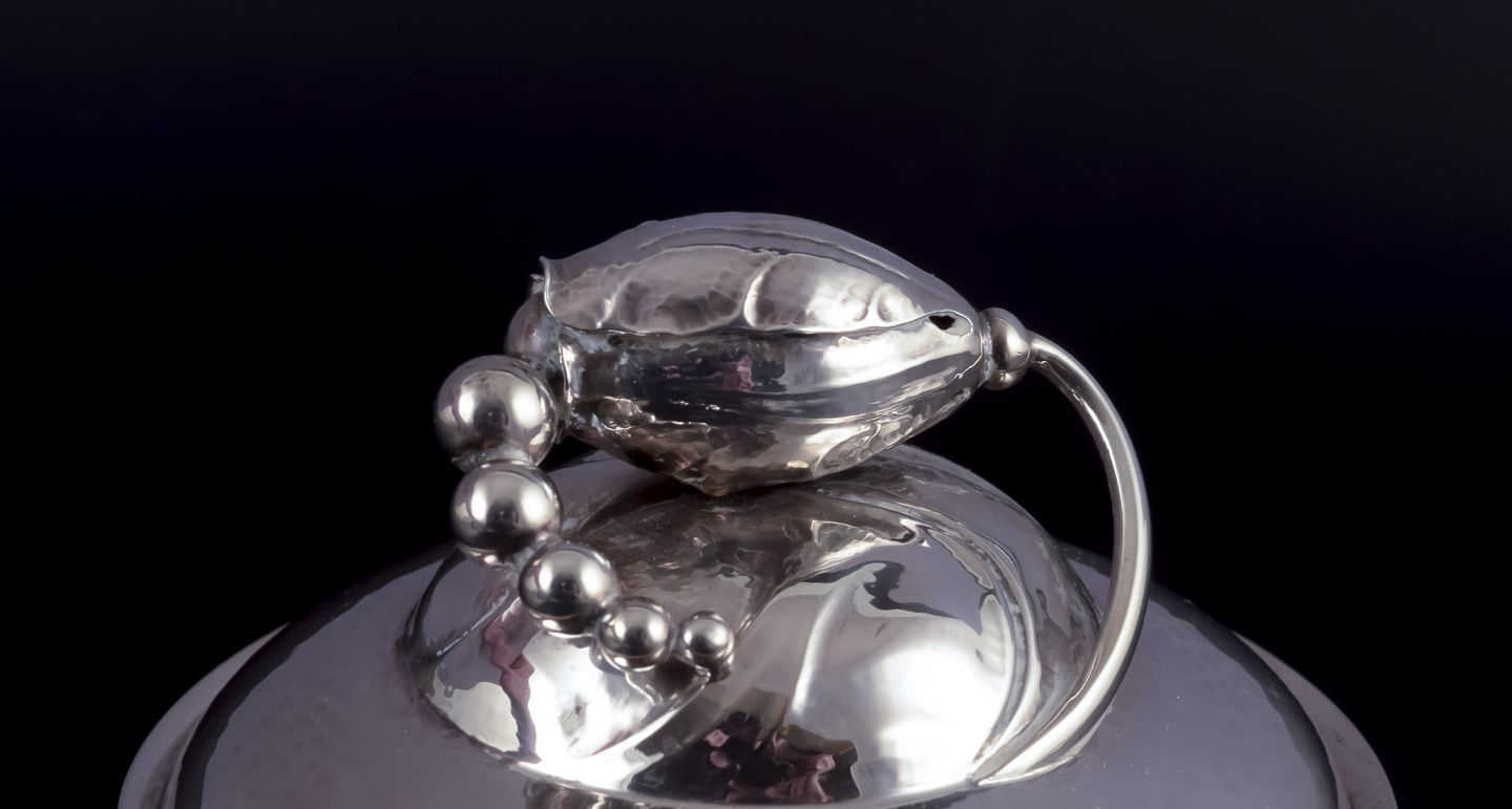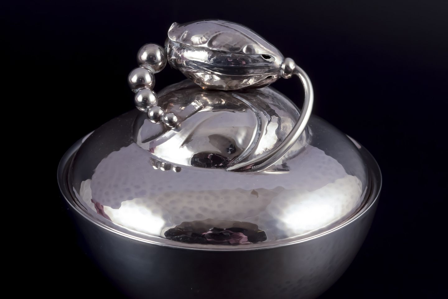 Georg Jensen Magnolia sukkerskål i hammerslået sterlingsølv.