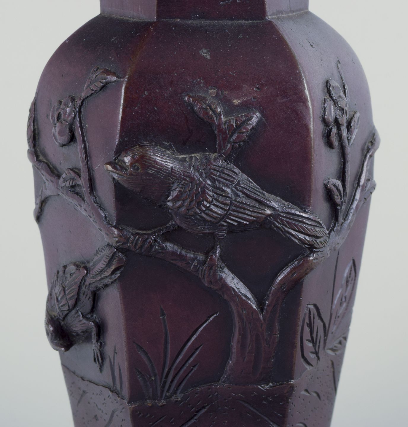 Fugle på grene i relief. Prydet med Elefanthoveder.
