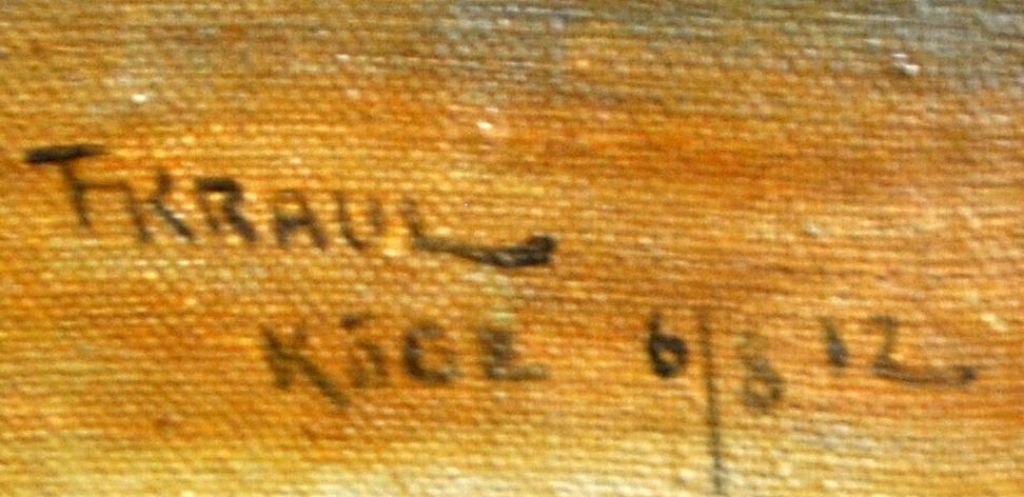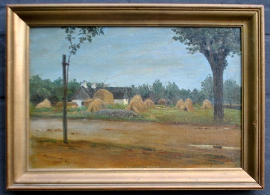 Kraul, Fritz (1862 - 1935) Danmark: En gård i Køge. Olie på lærred/plade. Signeret 6/8 1912. 30 x 46 cm.