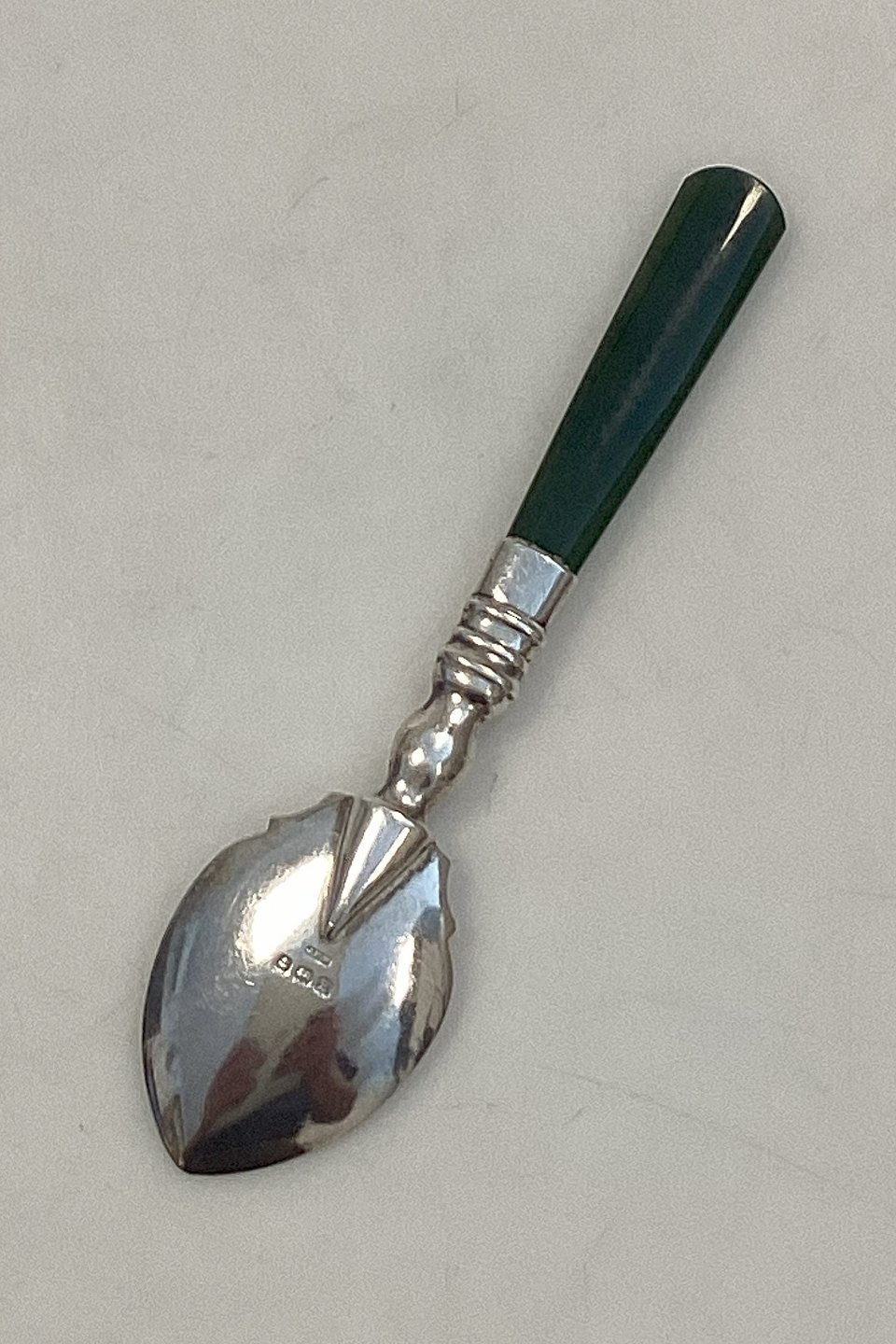 Engelsk J.H.W. Sterling sølv Sukkerske med håndtag af grøn agat