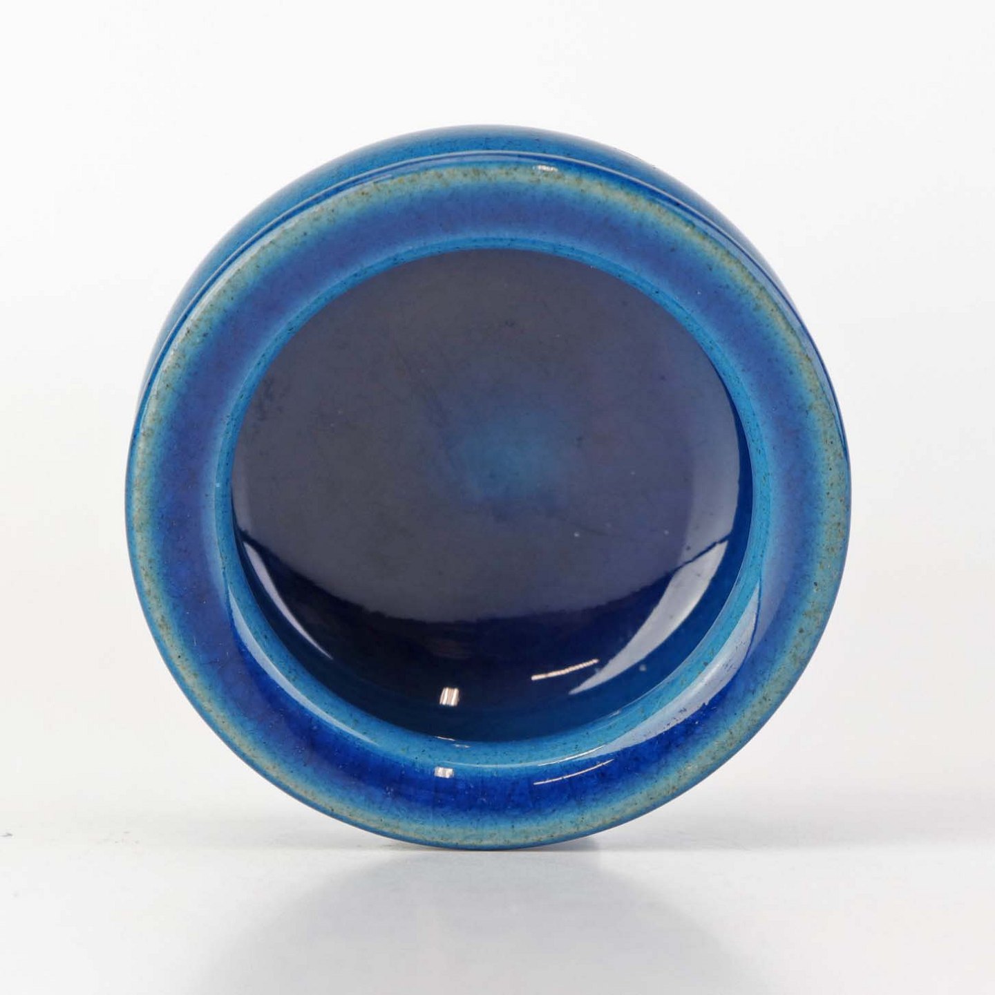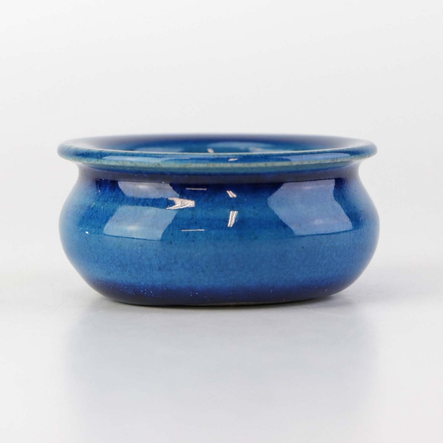 Lille skål til salt i blå glaseret keramik.