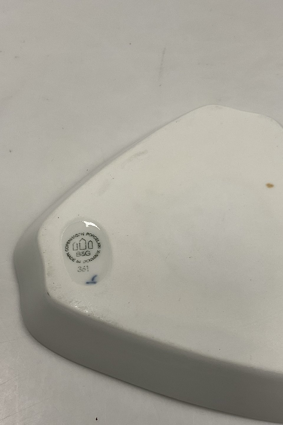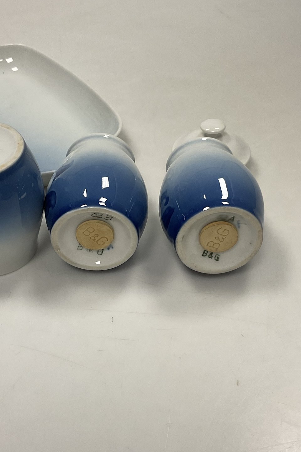 Bing og Grøndahl Julerose Plat-de-ménage No 52. Fad No 52D måler 16 cm (6.39 inch ). Sennepskrukke No 52C og Salt- og pebersæt måler 7-8 cm (3 5/32 in).