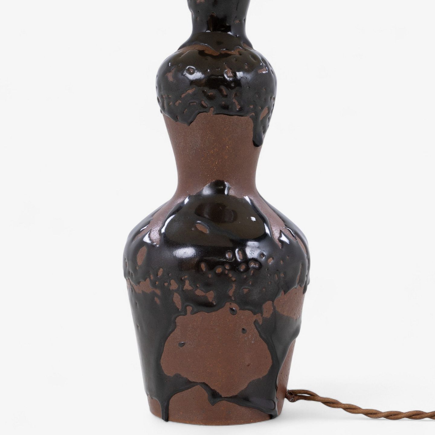 Bordlampe i stentøj dekoreret med rødbrun glasur og olivin-glasur med ny plisseret skærm. Formgivet i 1944. Signeret.