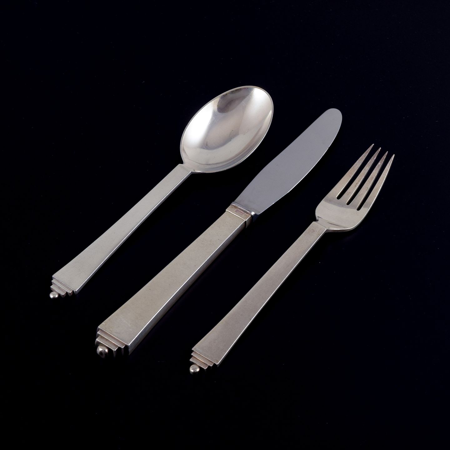 Komplet sekspersoners middagsservice i sterlingsølv.