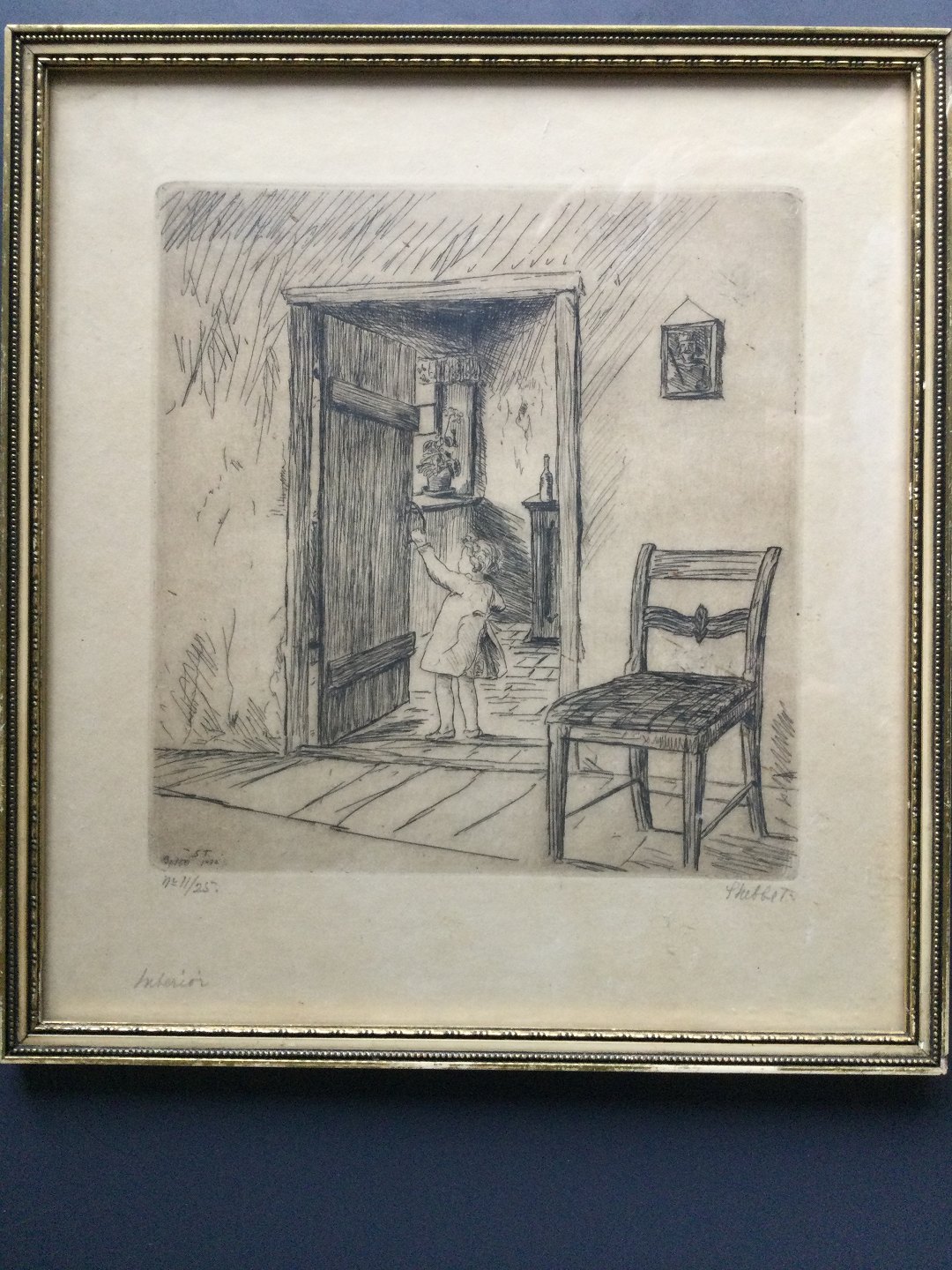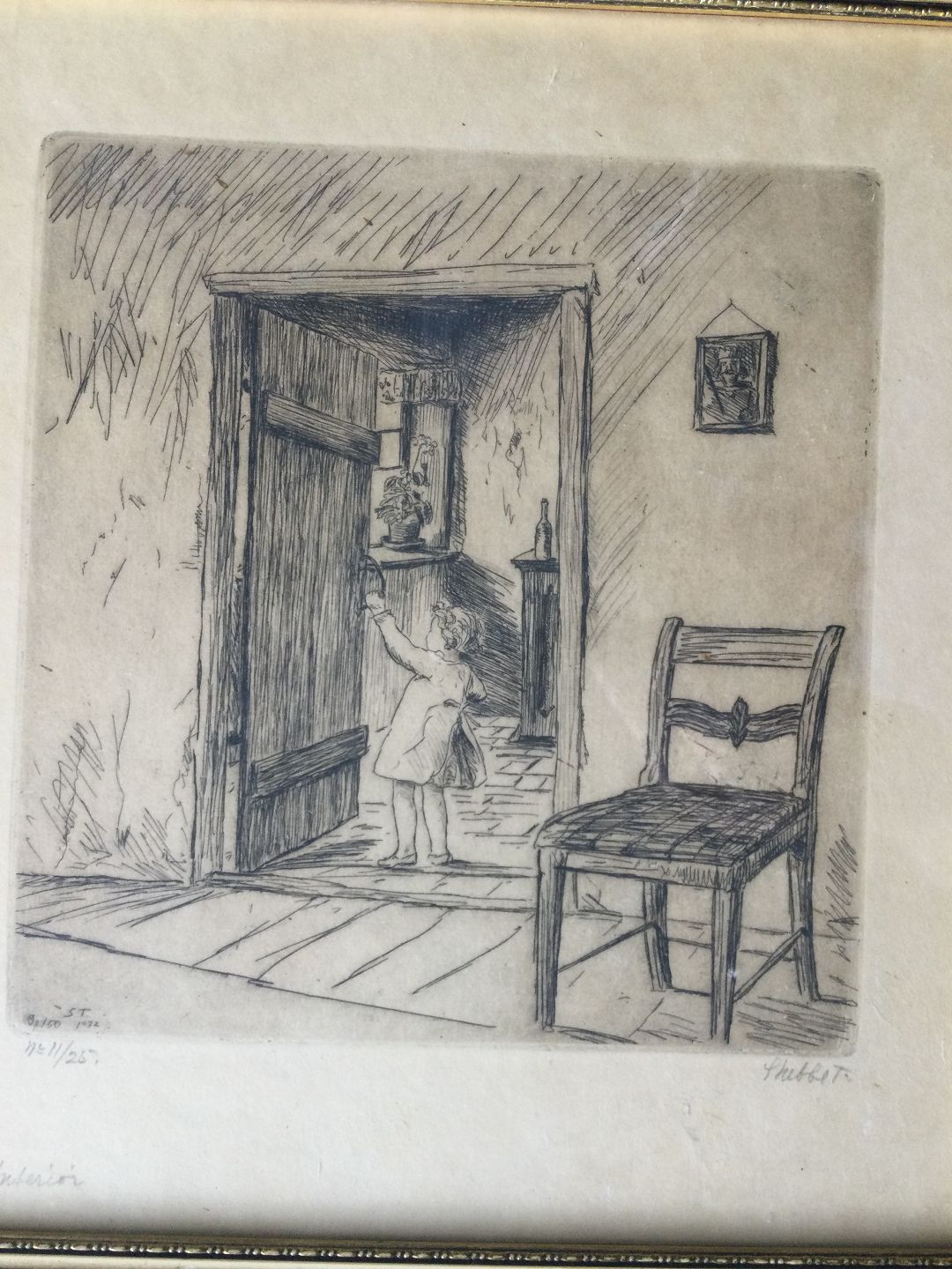 Radering af C.V. Stubbe Teglbjærg - Pige ved køkkendør 1932 - Opus 150.
