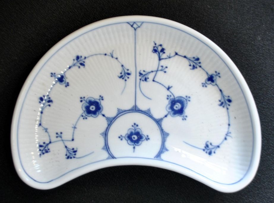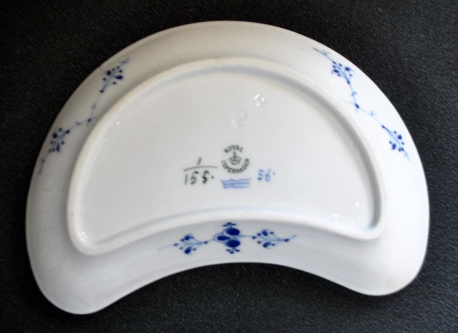 Royal Copenhagen, nyreformet fad, no. 155, musselmalet, riflet, 20. årh. København, Danmark.