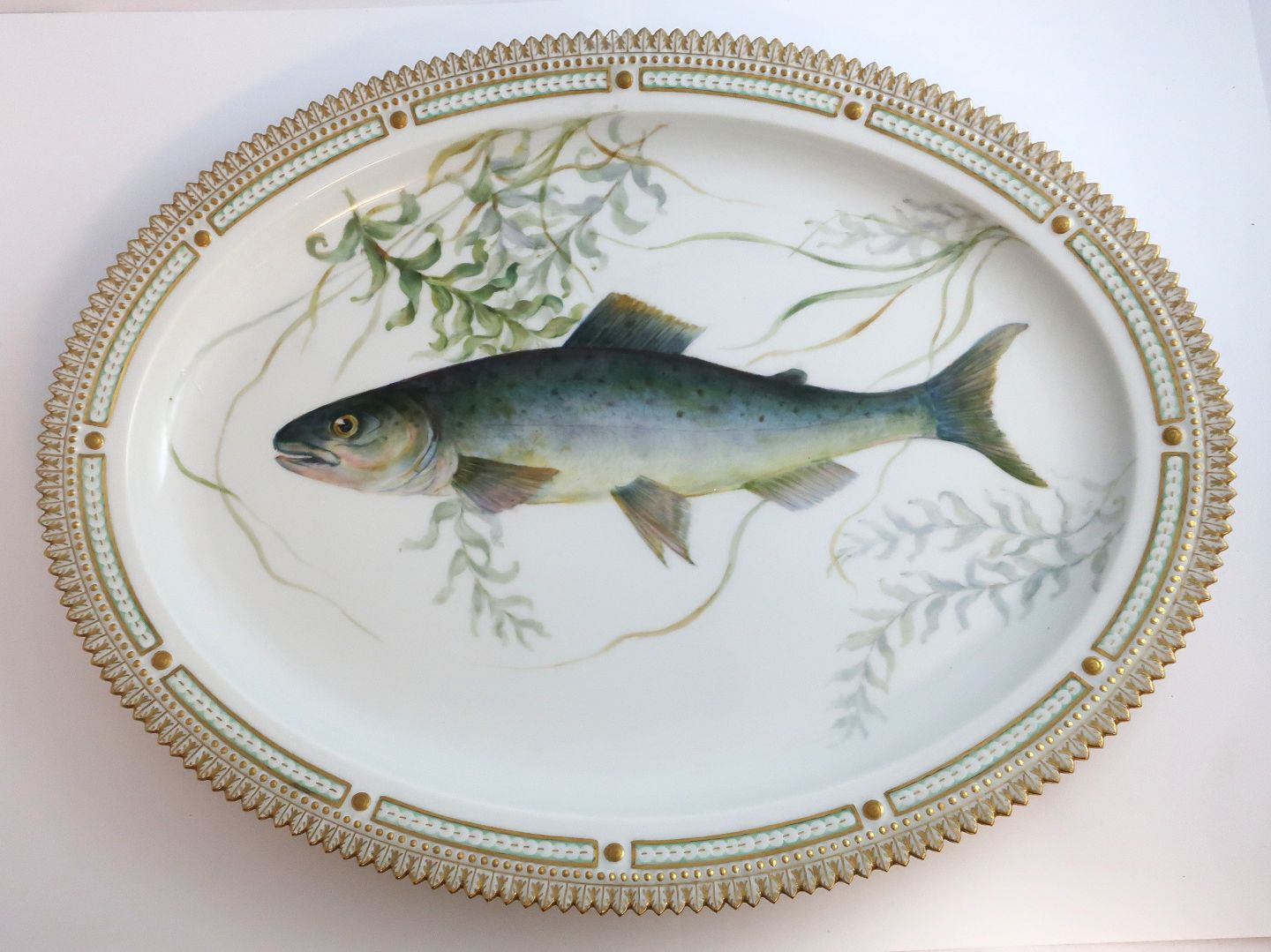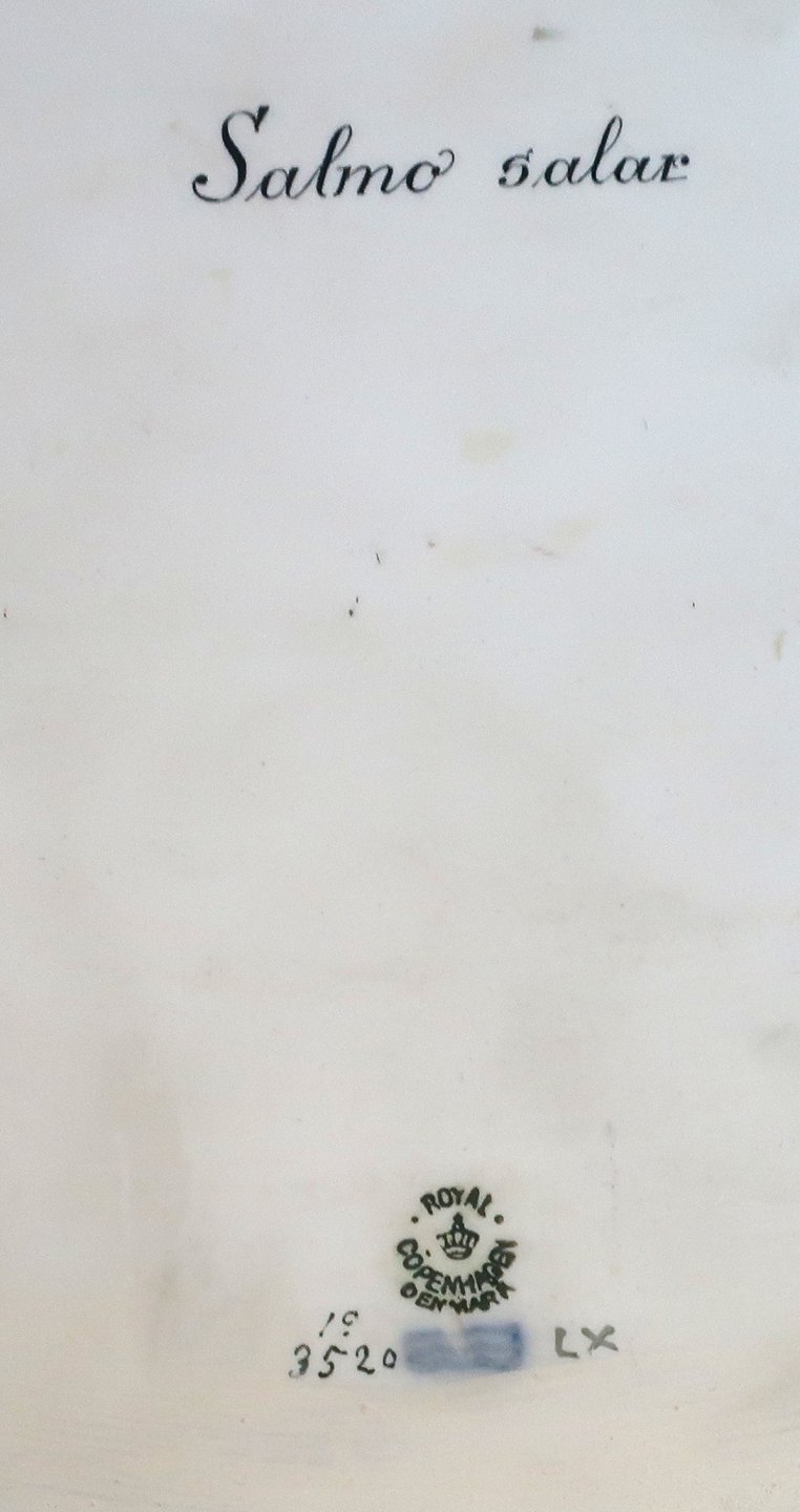 Royal Copenhagen. Fauna Danica, fisk. Ovalt serveringsfad. Model # 19 - 3520. Længde 47 cm. Bredde 36 cm. (2 sortering). Salmo salar