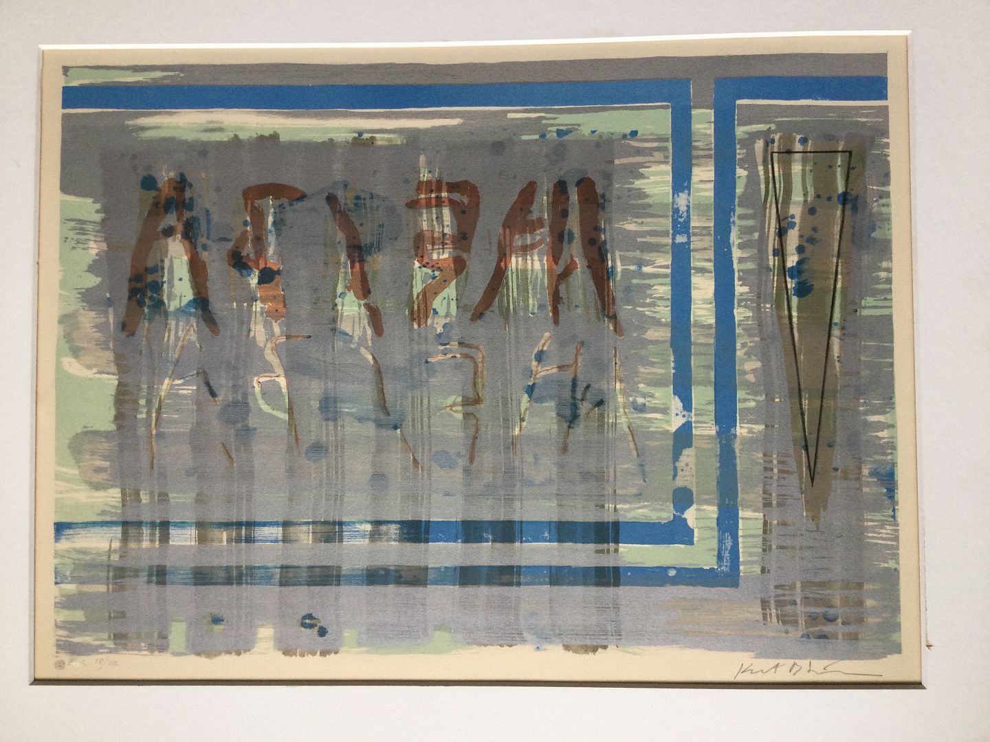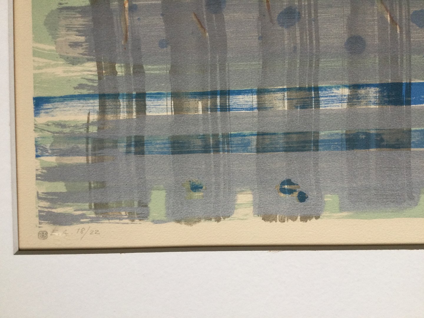 Farvelitografi på papir monteret i passepartout.