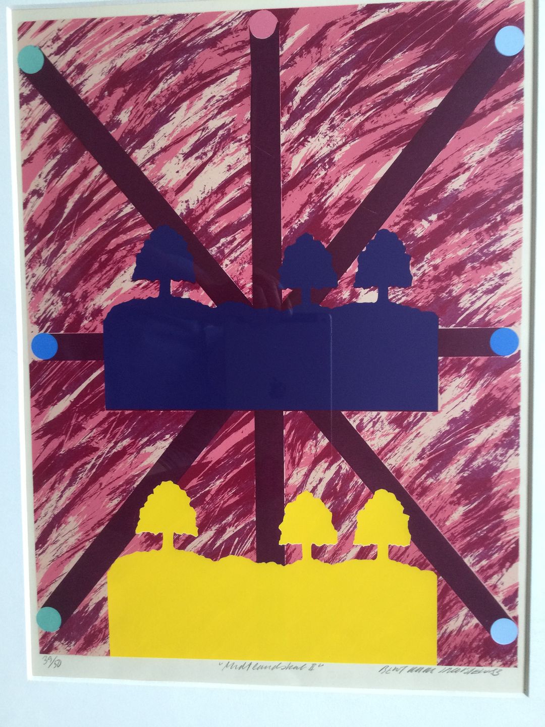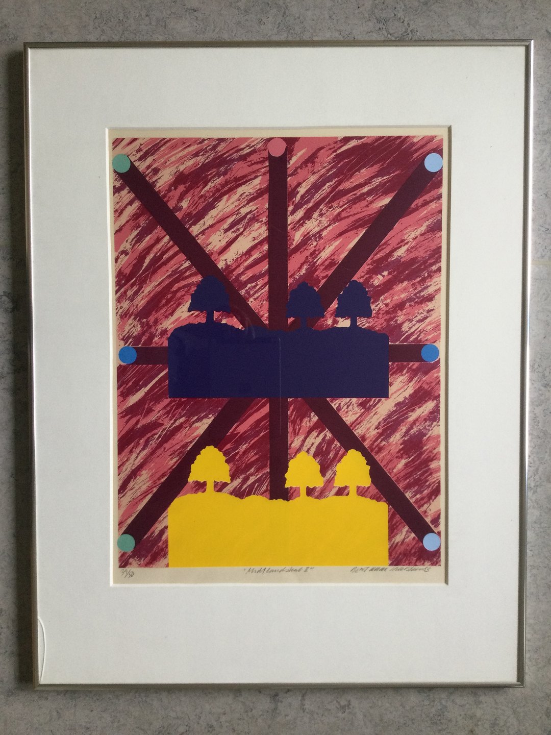 Farvelitografi af Bent Karl Jacobsen - Komposition "Landskab II 1983.