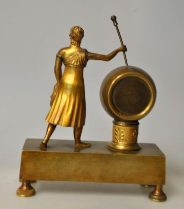 Fransk empire urhus i forgyldt bronze, ca. 1810. Lommeurs størrelse.