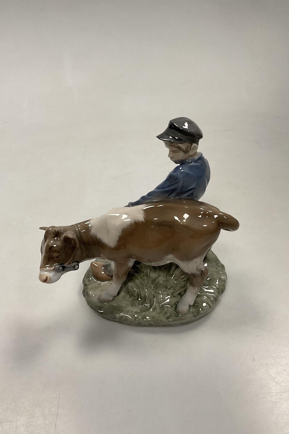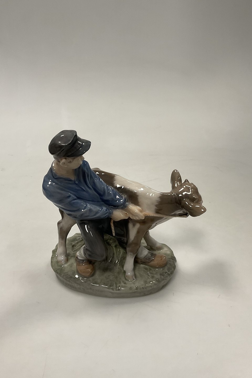 Royal Copenhagen Figur Dreng med Kalv No. 772. Brun udgave af ko.