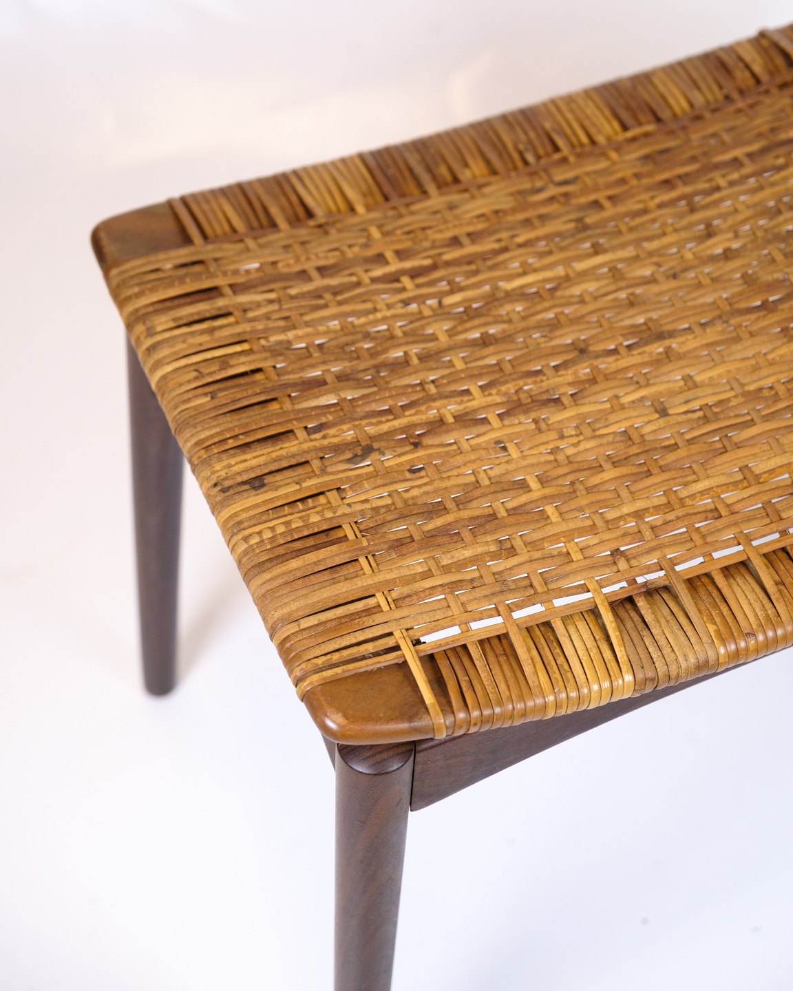 Fletskammel i teaktræ, designet af Sigfred Omann for Ølholm Møbelfabrik i 1960’erne. Klassisk dansk design med håndflettet sæde.