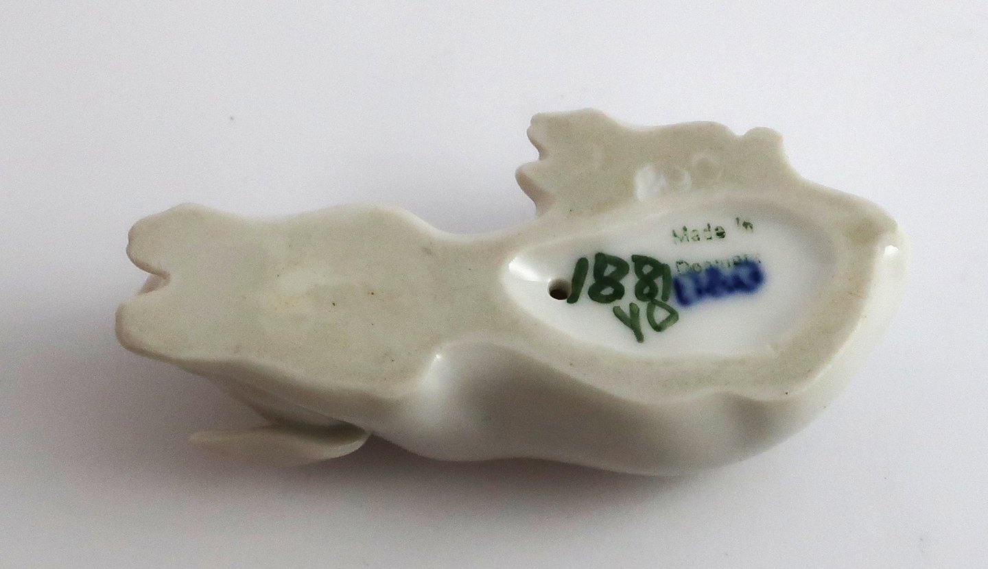 Bing & Grøndahl. Porcelænsfigur. Liggende gris. Model 1881. Længde 6 cm. (1 sortering).