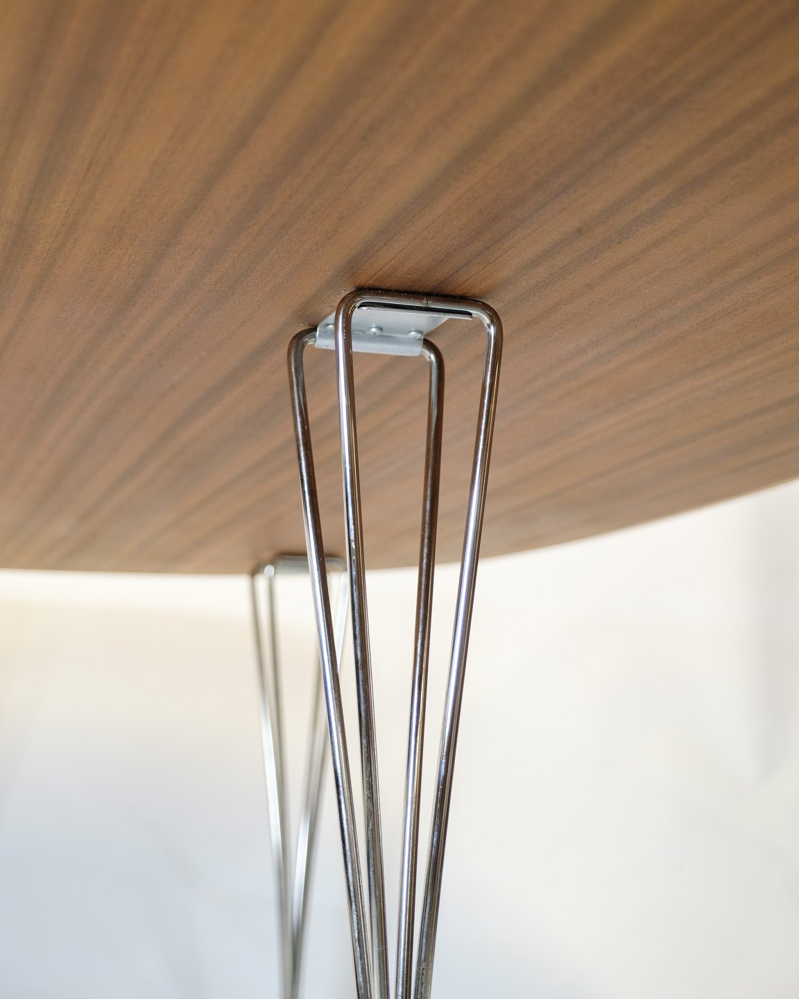Superellipse spisebord af Bruno Mathsson & Piet Hein. Egetræsoverflade med alukant og elegante metalben. Klassisk dansk design.