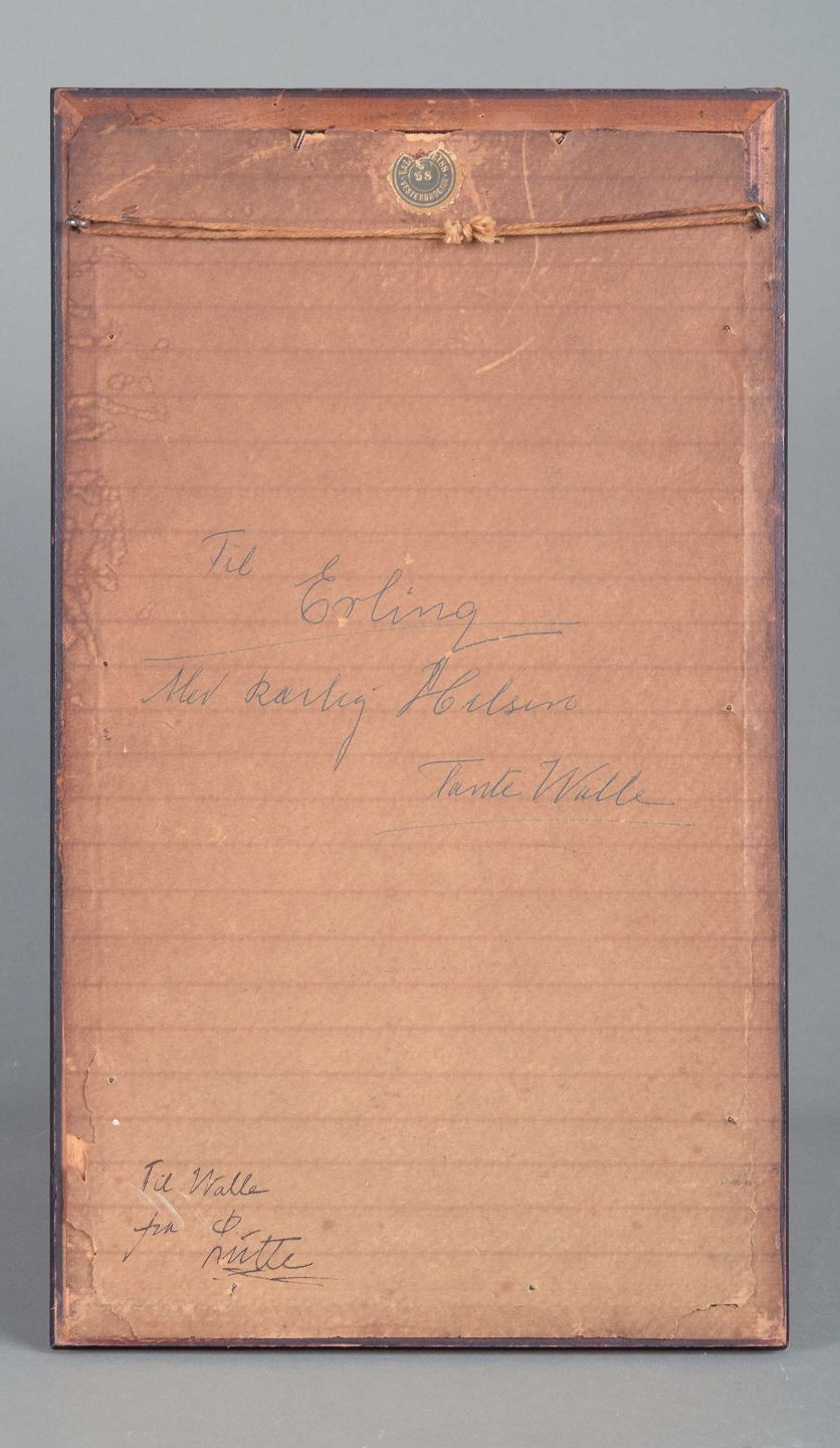 Frame: H. 38 cm, W. 22 cm, black lacquered wooden frame with age-related wear