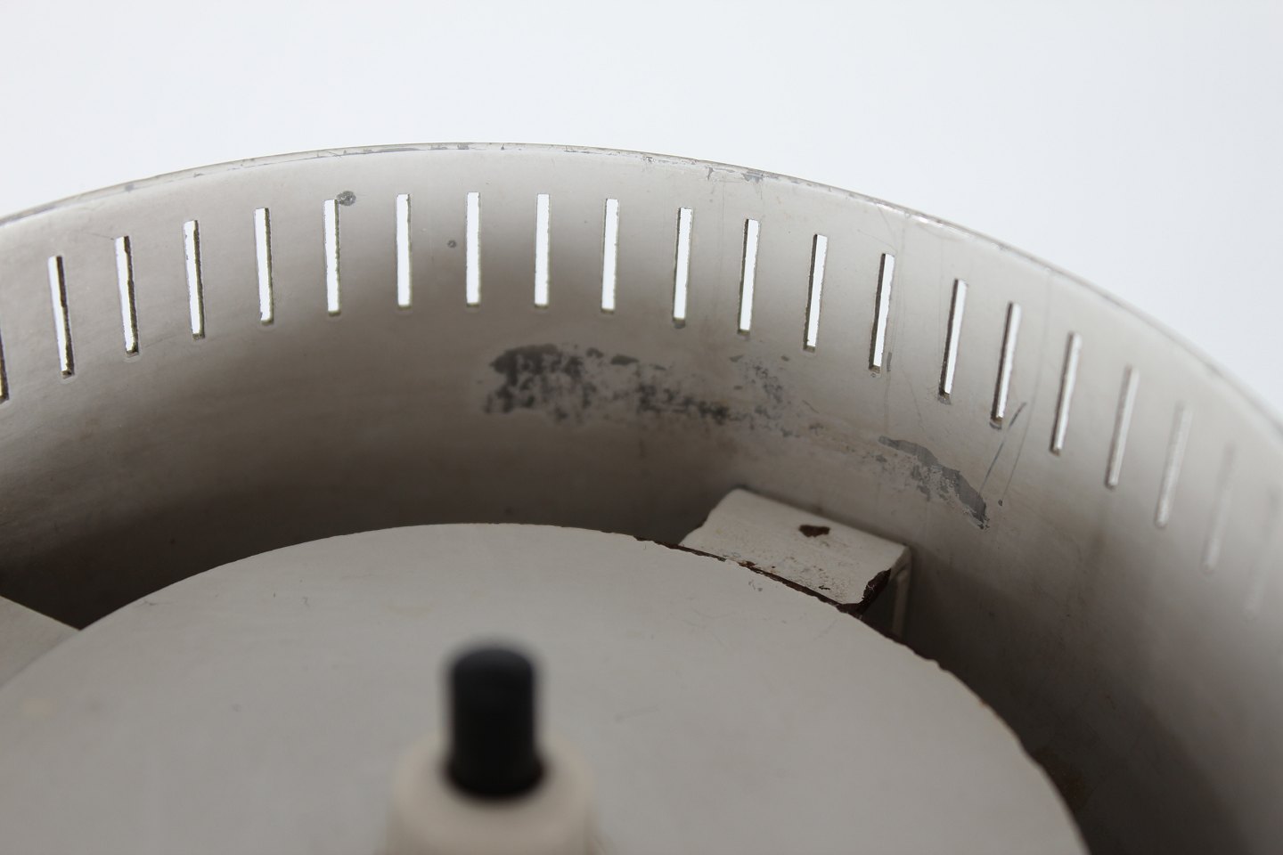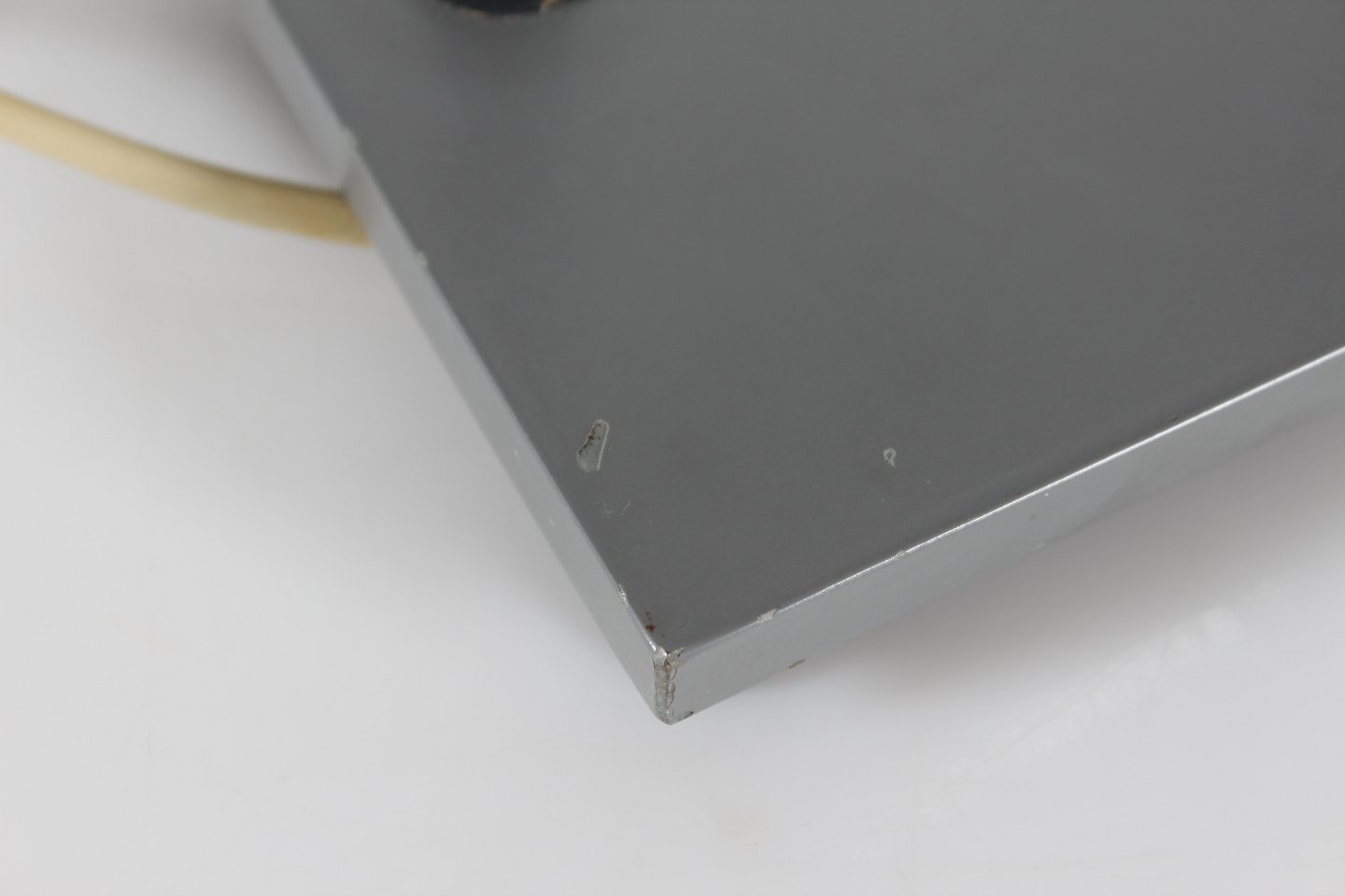 fod af grå lakeret metal
