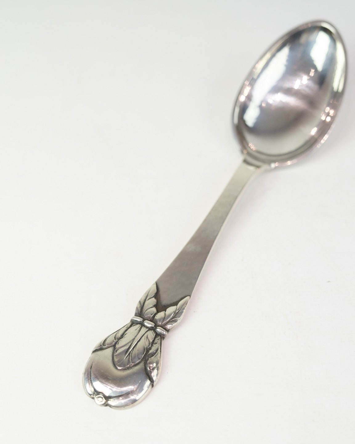 Spiseske fra A.C. Illum, København. Tretårnet sølv stemplet 825, ca. midt 1900-tallet. Længde 20 cm. Illum var kendt for høj kvalitet.